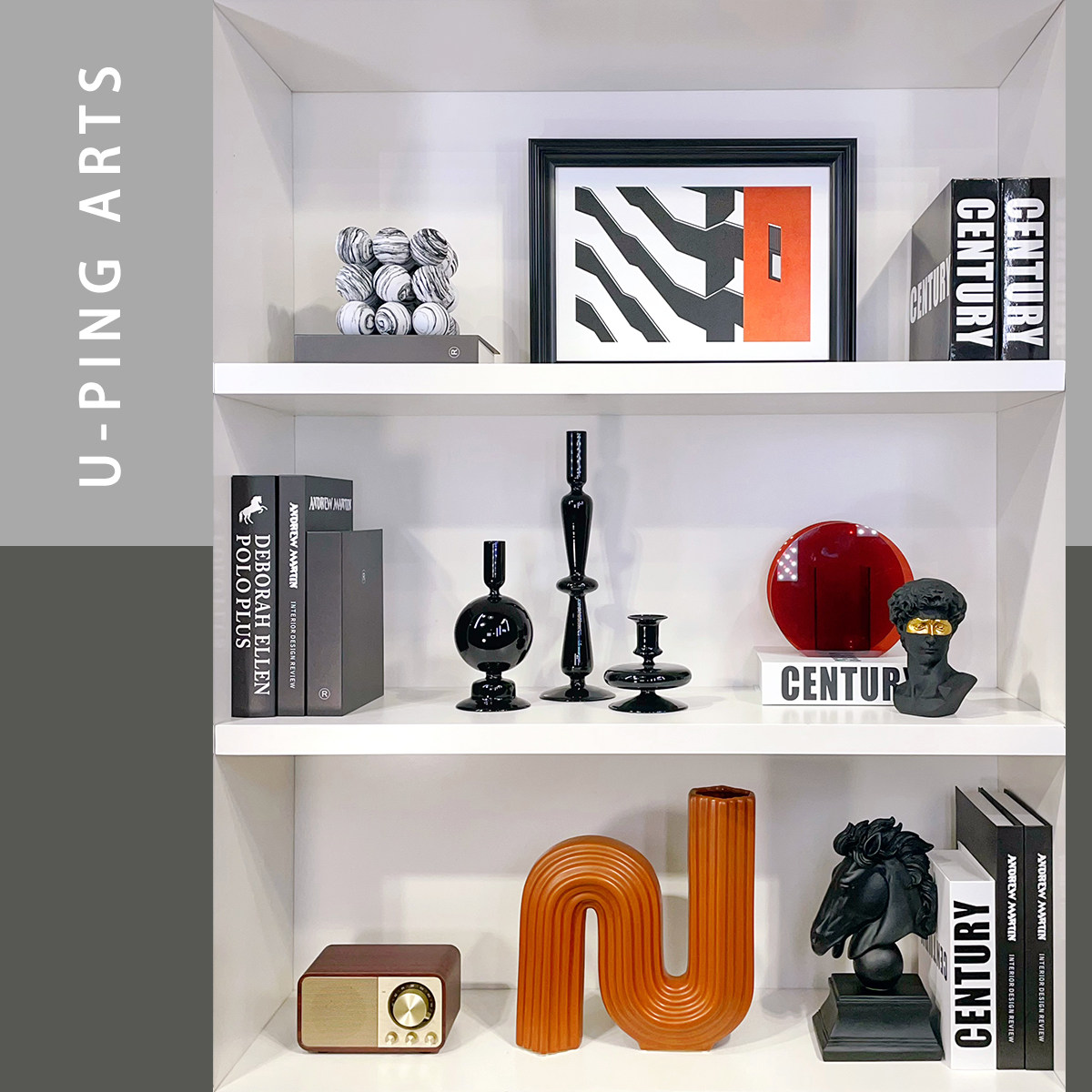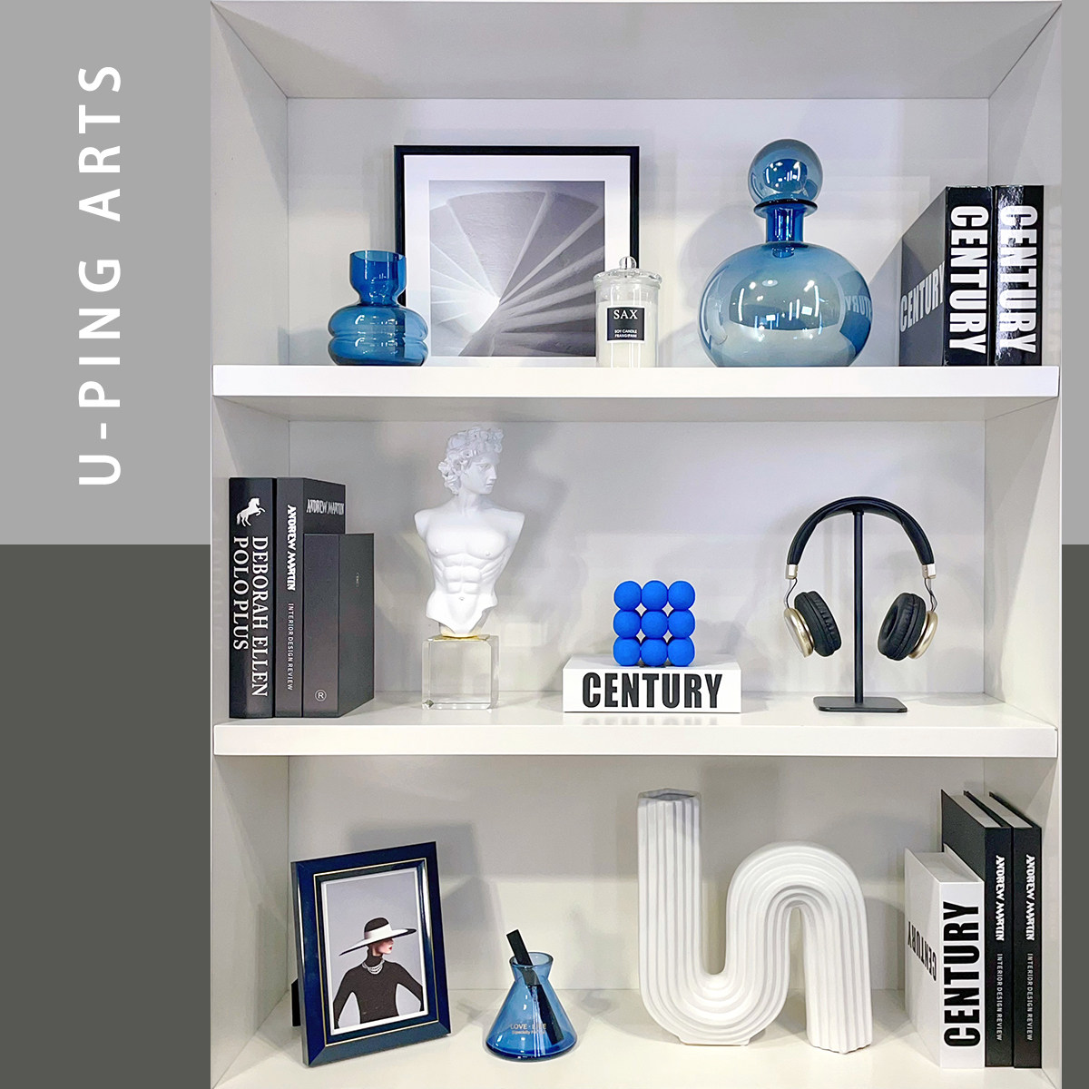 样板间家居摆件北欧软装饰品书房书柜挂画相框蜡烛杯组合ZH2382