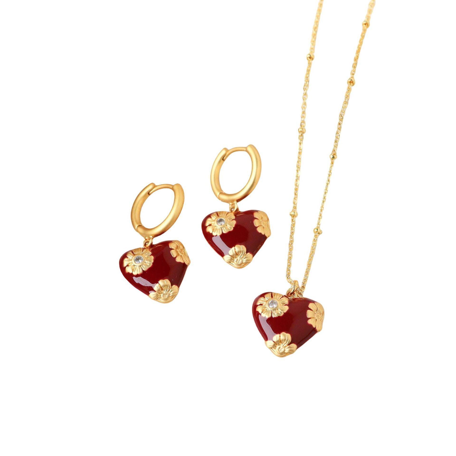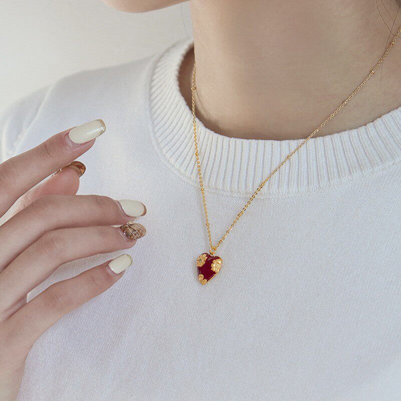 复古精致气质百搭红色滴油爱心项链轻奢高级感本命年心形锁骨链女