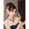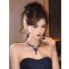 复古蓝色皓石项链耳环套装女轻奢夸张颈链名媛千金晚礼服新娘配饰