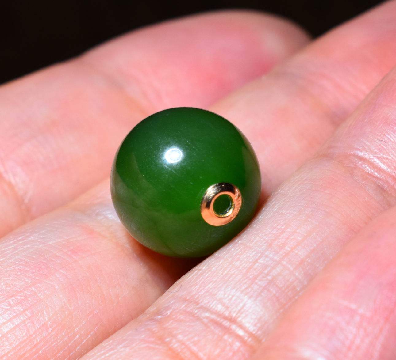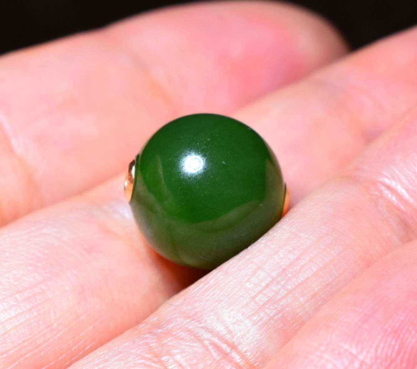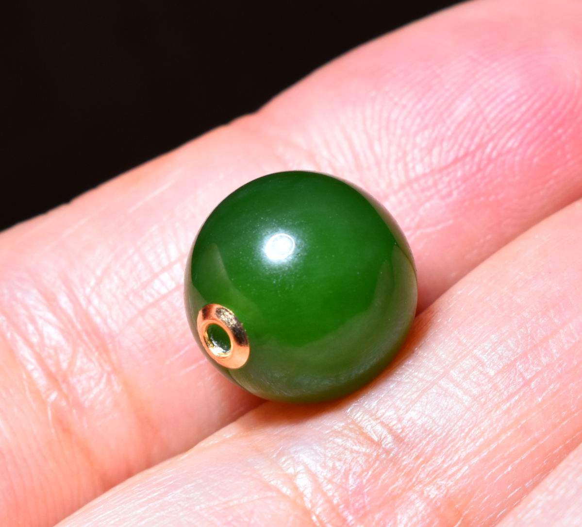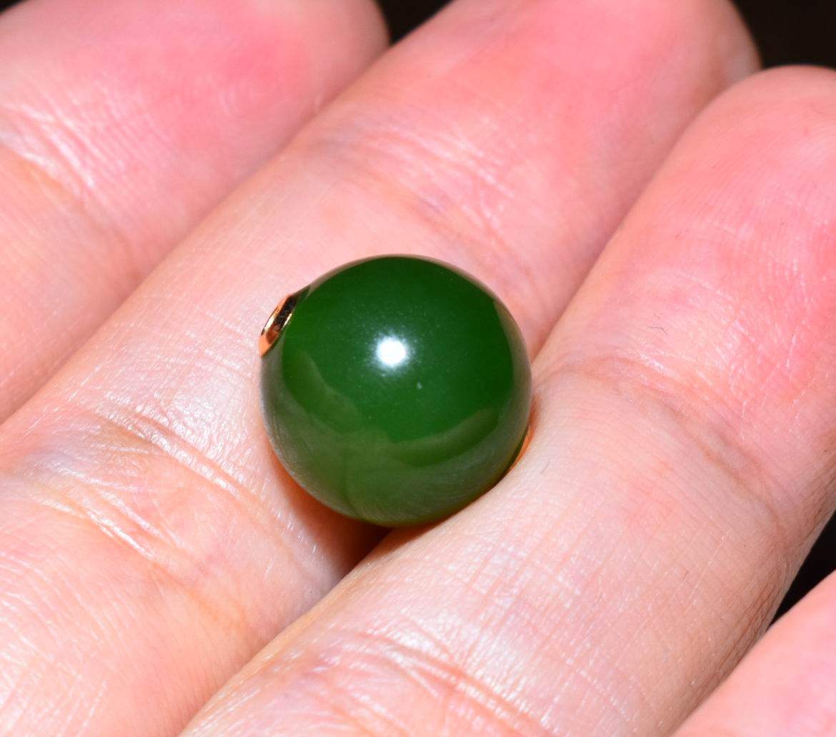 新疆的猫JJ121901 2.7克直径12mm俄料菠菜绿碧玉18k金转运珠