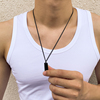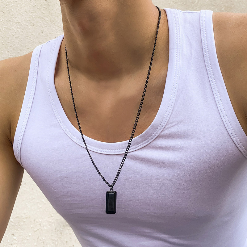 男款黑色长方形吊牌特密链项链 欧美潮个性时尚方牌吊坠毛衣链