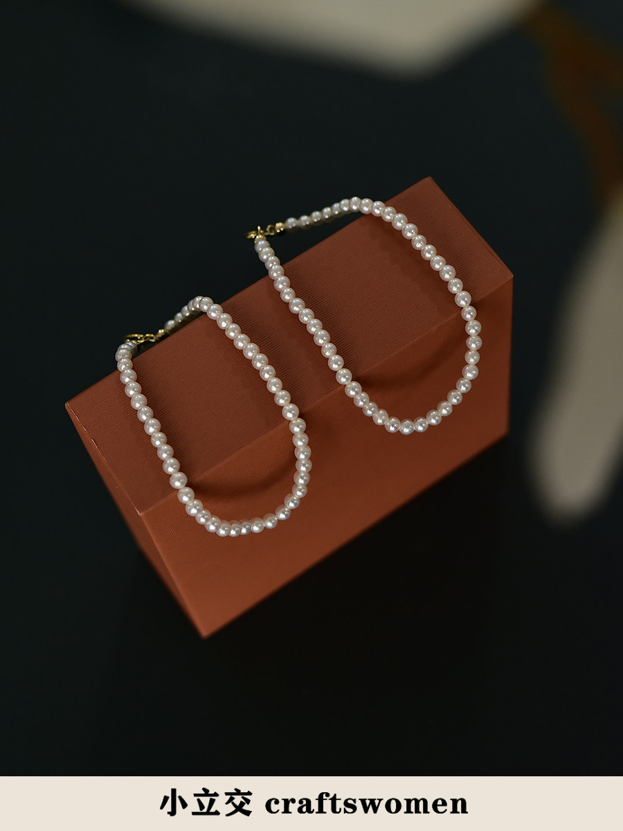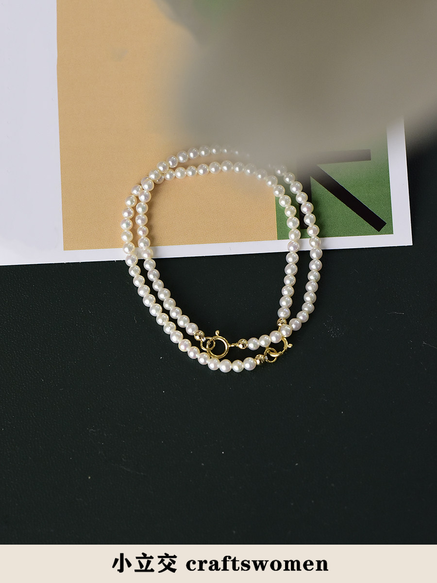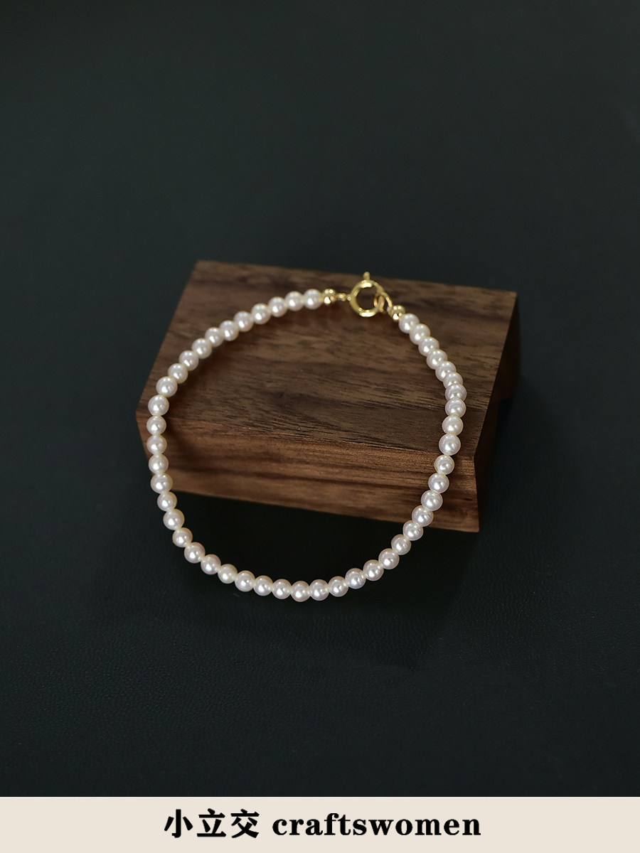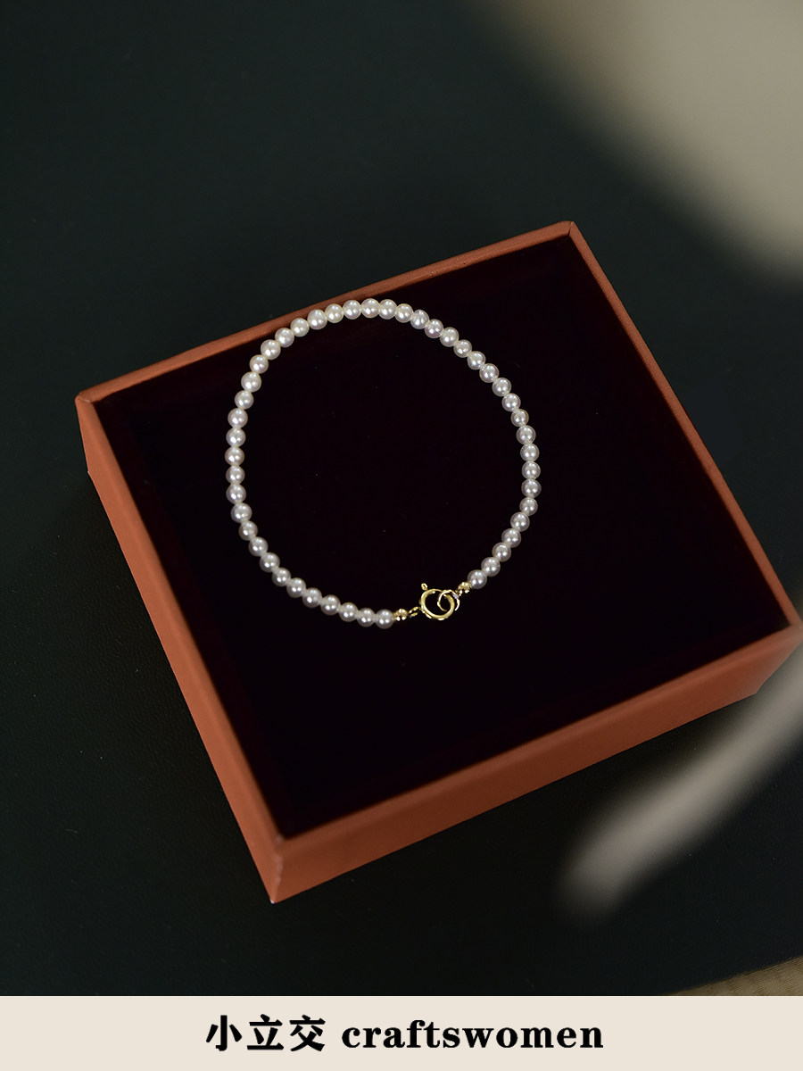 极强光迷你3mm近正圆天然淡水天然baby珍珠手链女14K包金手串礼物