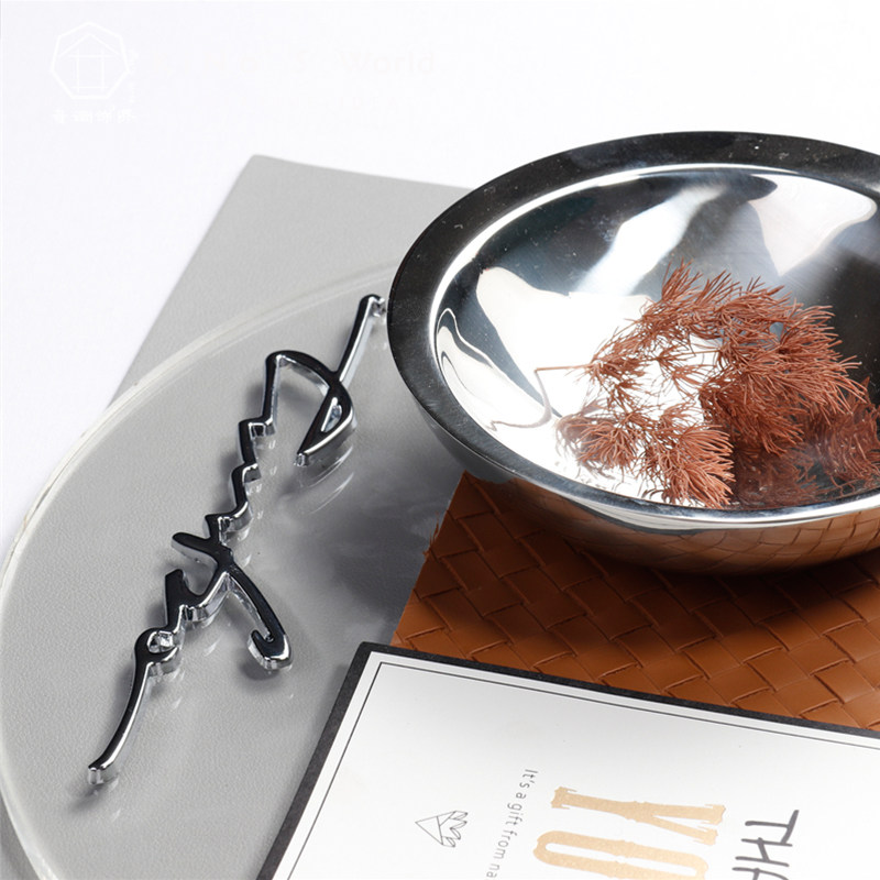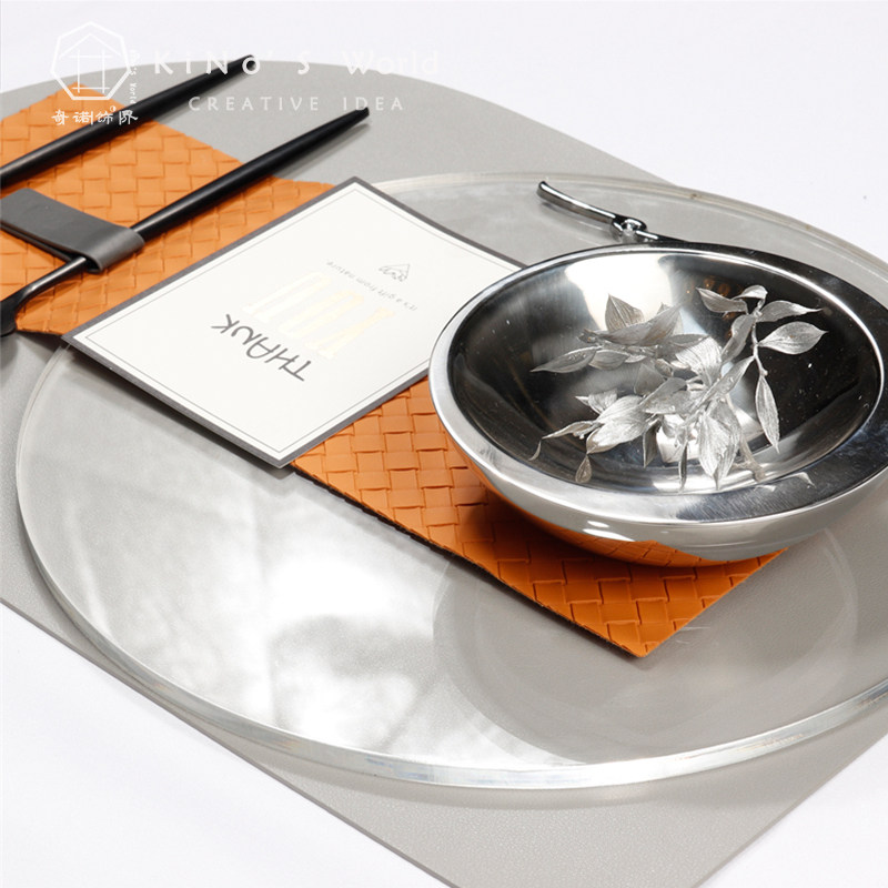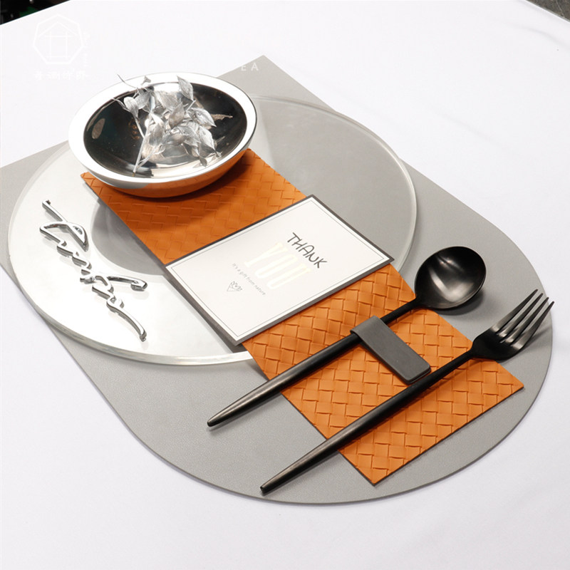 简约轻奢橙灰色西餐具餐垫摆件样板房间别墅餐厅餐桌餐盘摆盘装饰