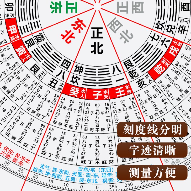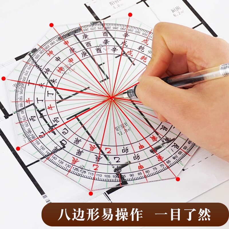 高精度加厚立极尺三元二十四山透明罗盘绘图尺24山户型布局立极规
