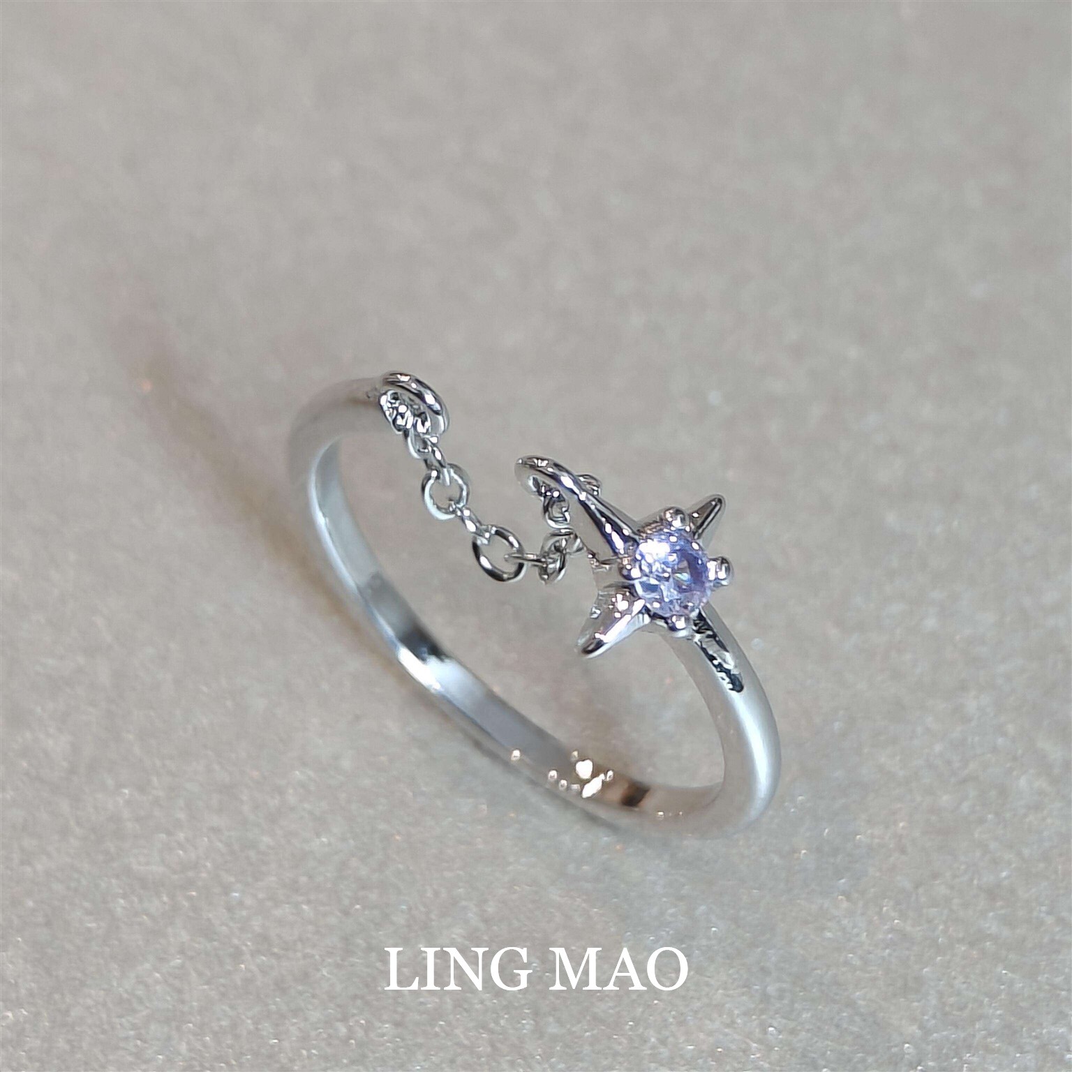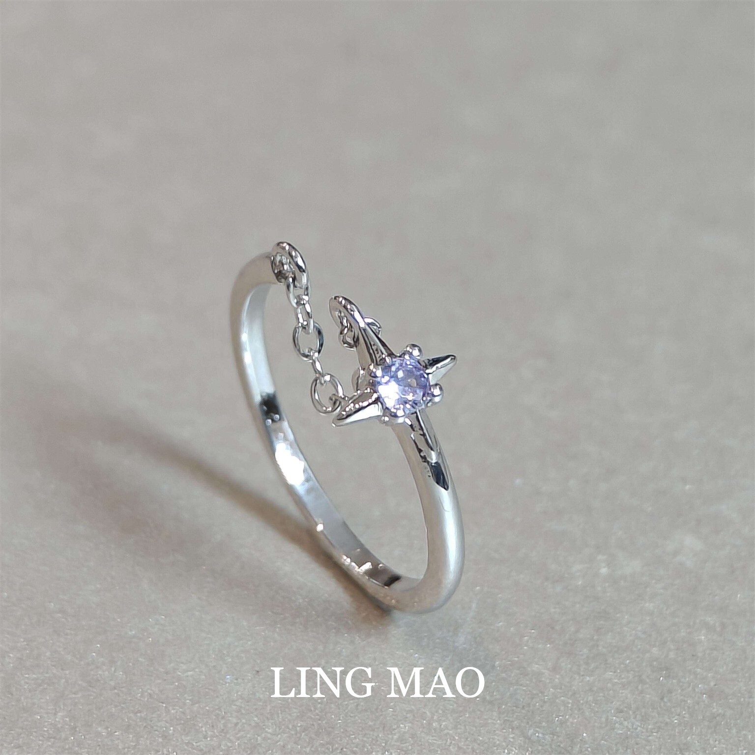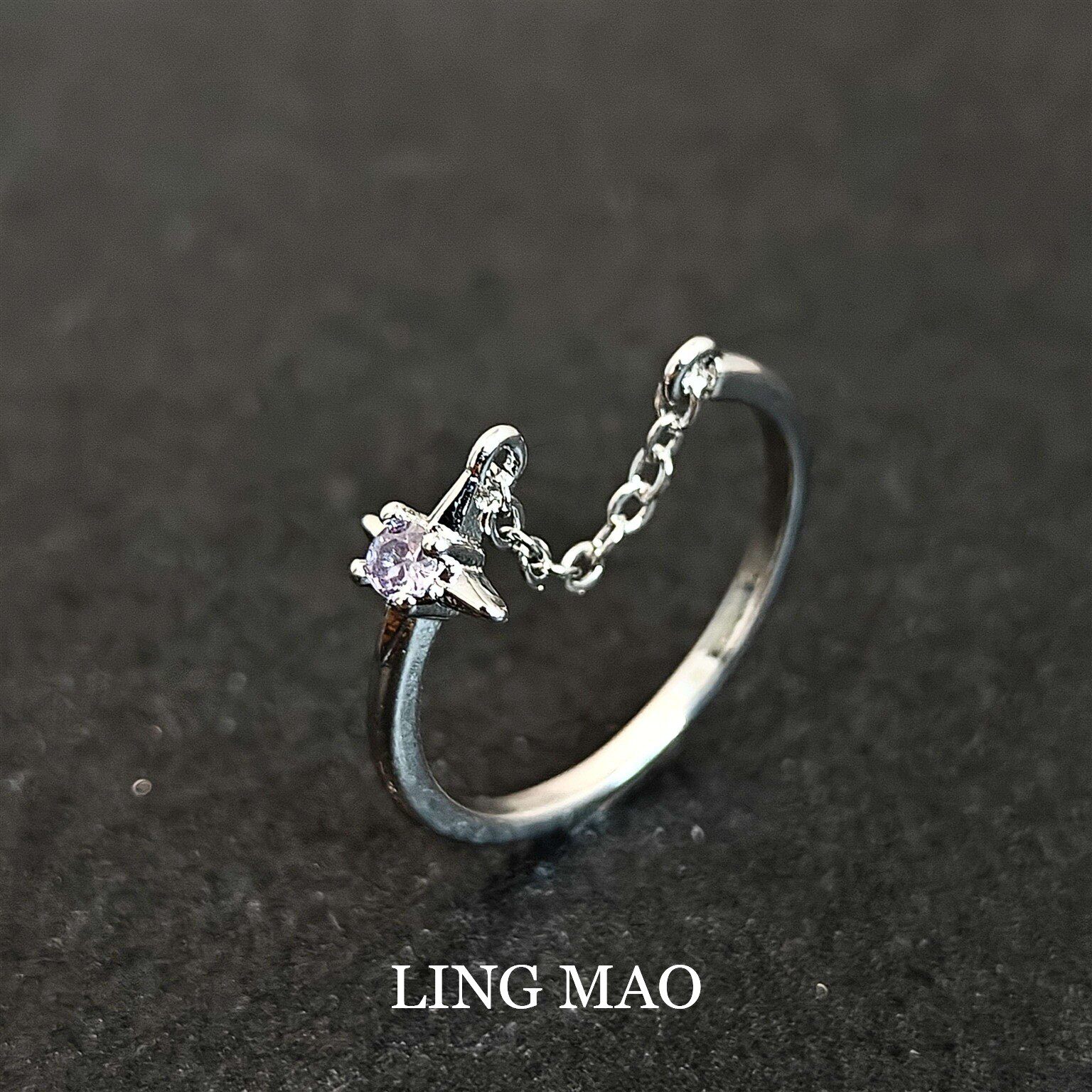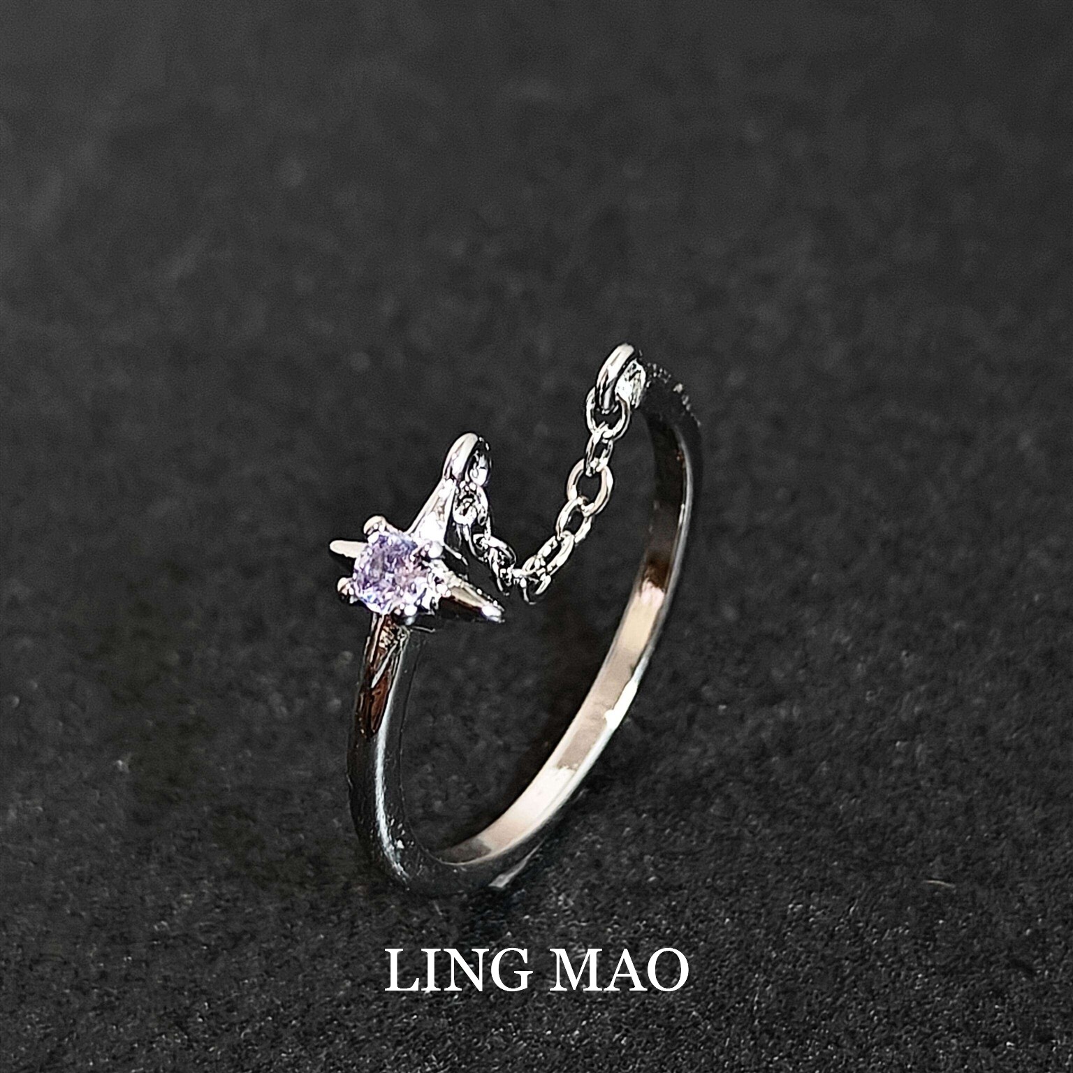 韩系紫色闪钻流星开口戒指清冷感个性简约百搭轻奢食指戒尾戒指环