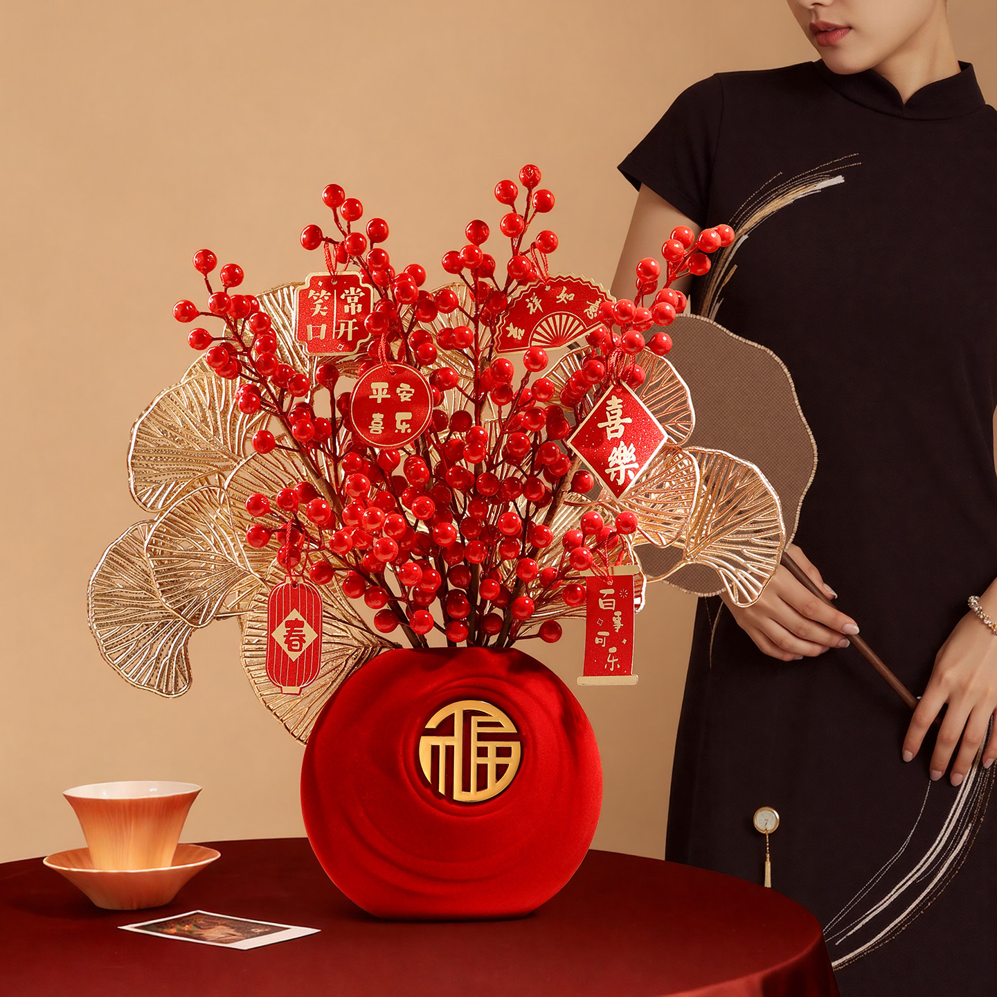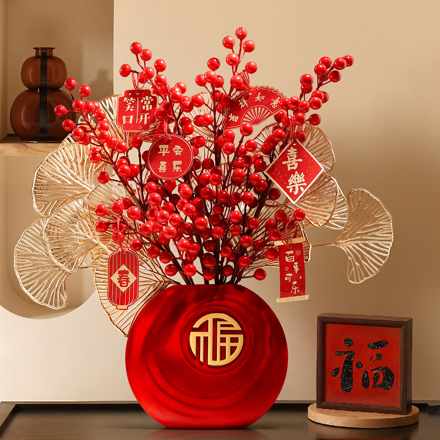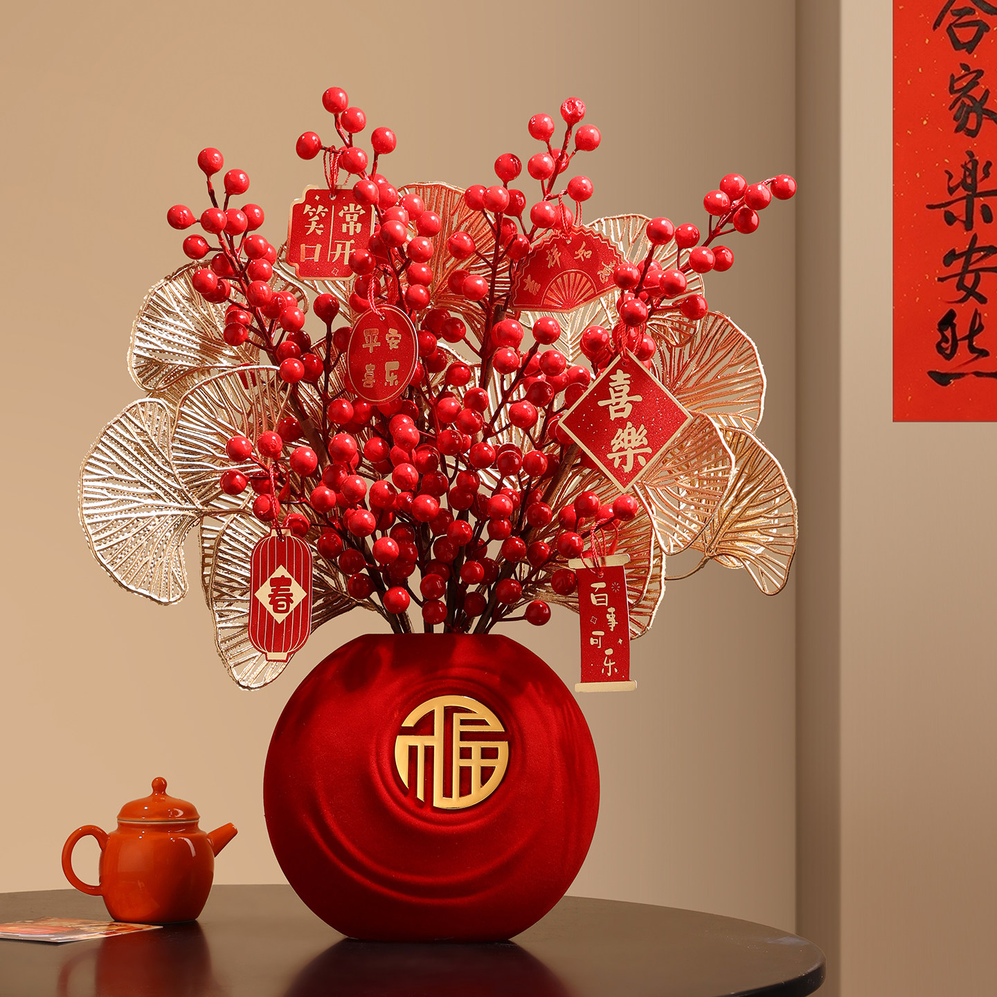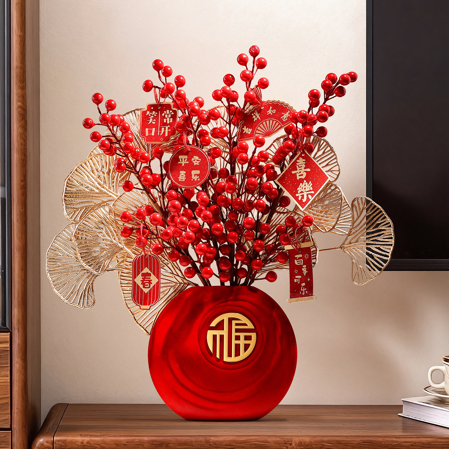 2026新款装饰摆件花瓶客厅插花客厅马年红色礼物创意乔迁场景布置