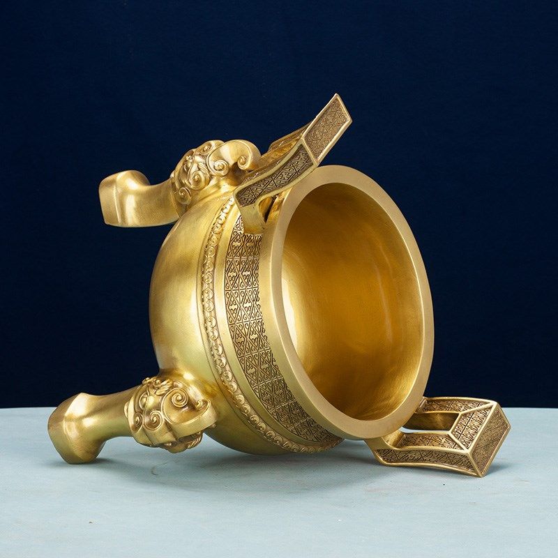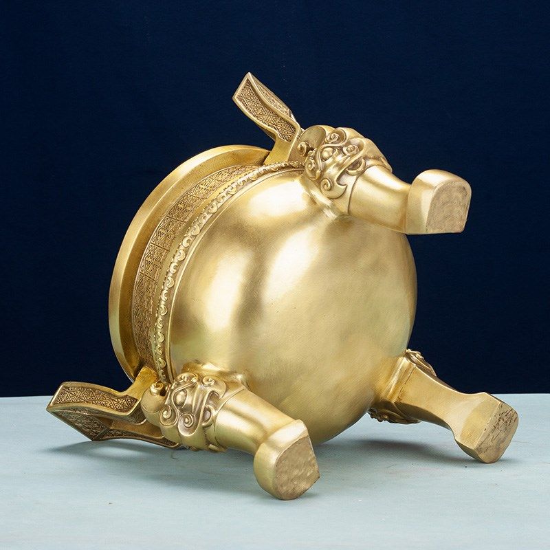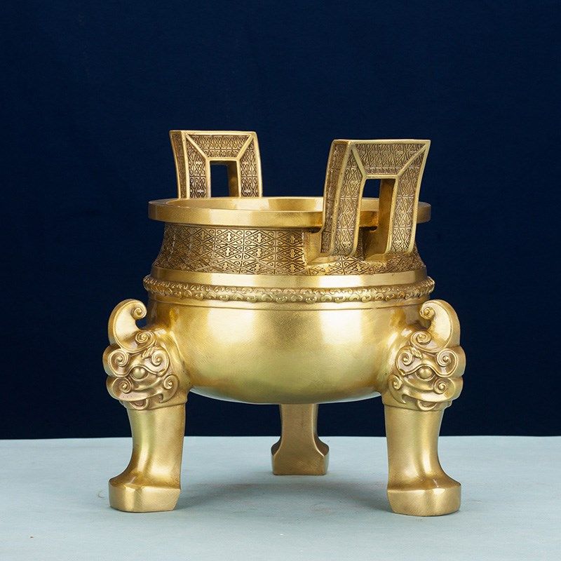 铜鼎摆件纯黄f铜楚大鼎三足圆鼎香炉办公室家居装饰品乔迁开业礼