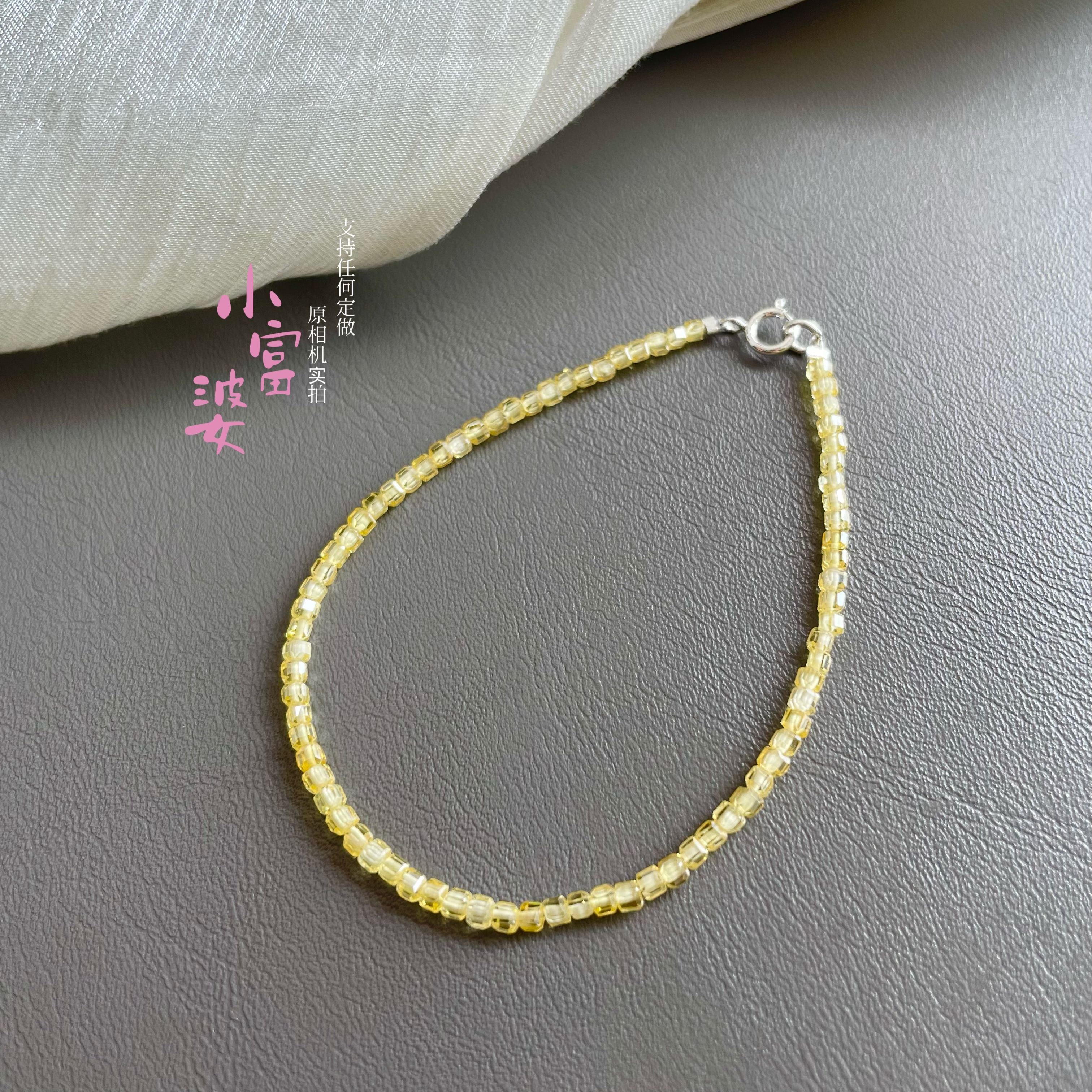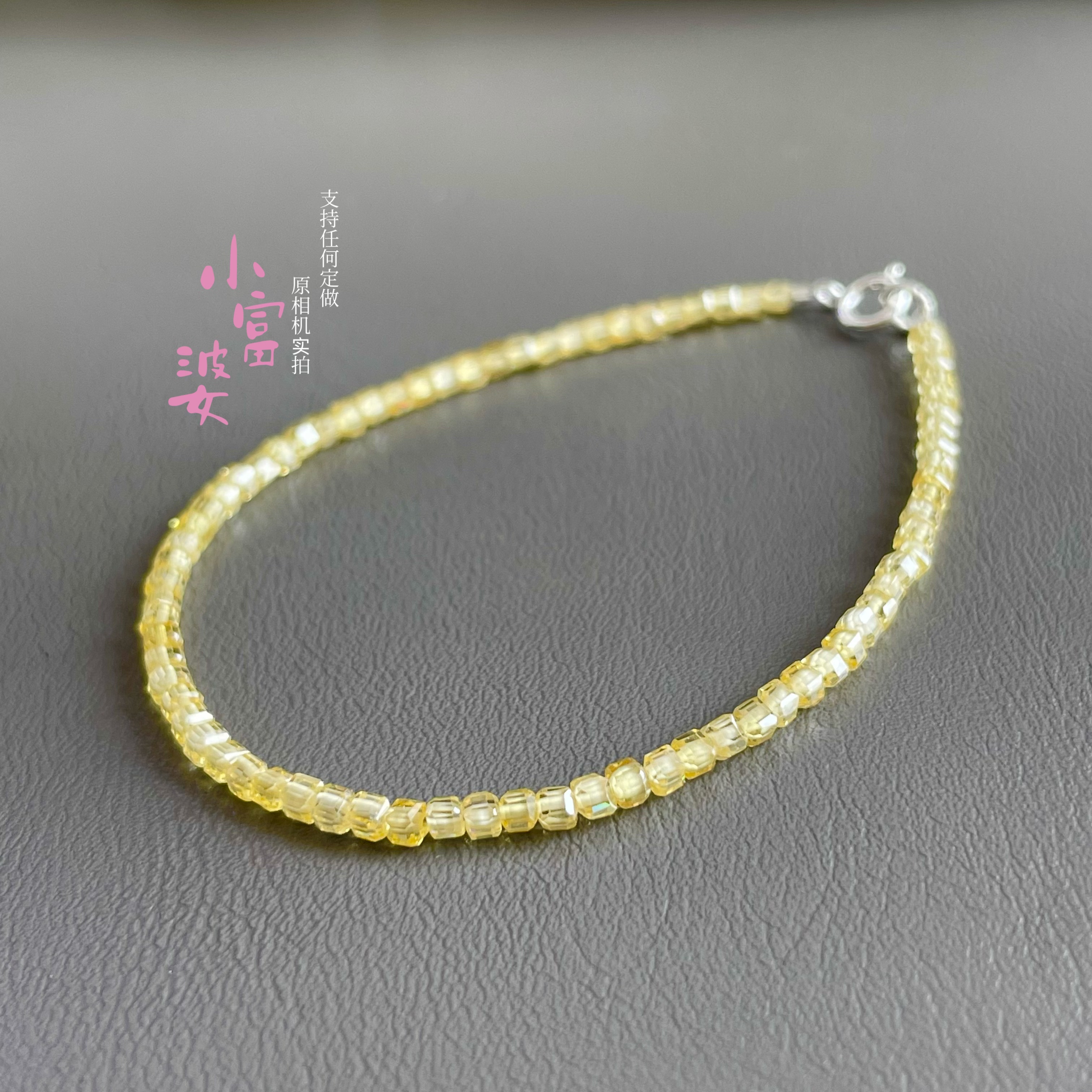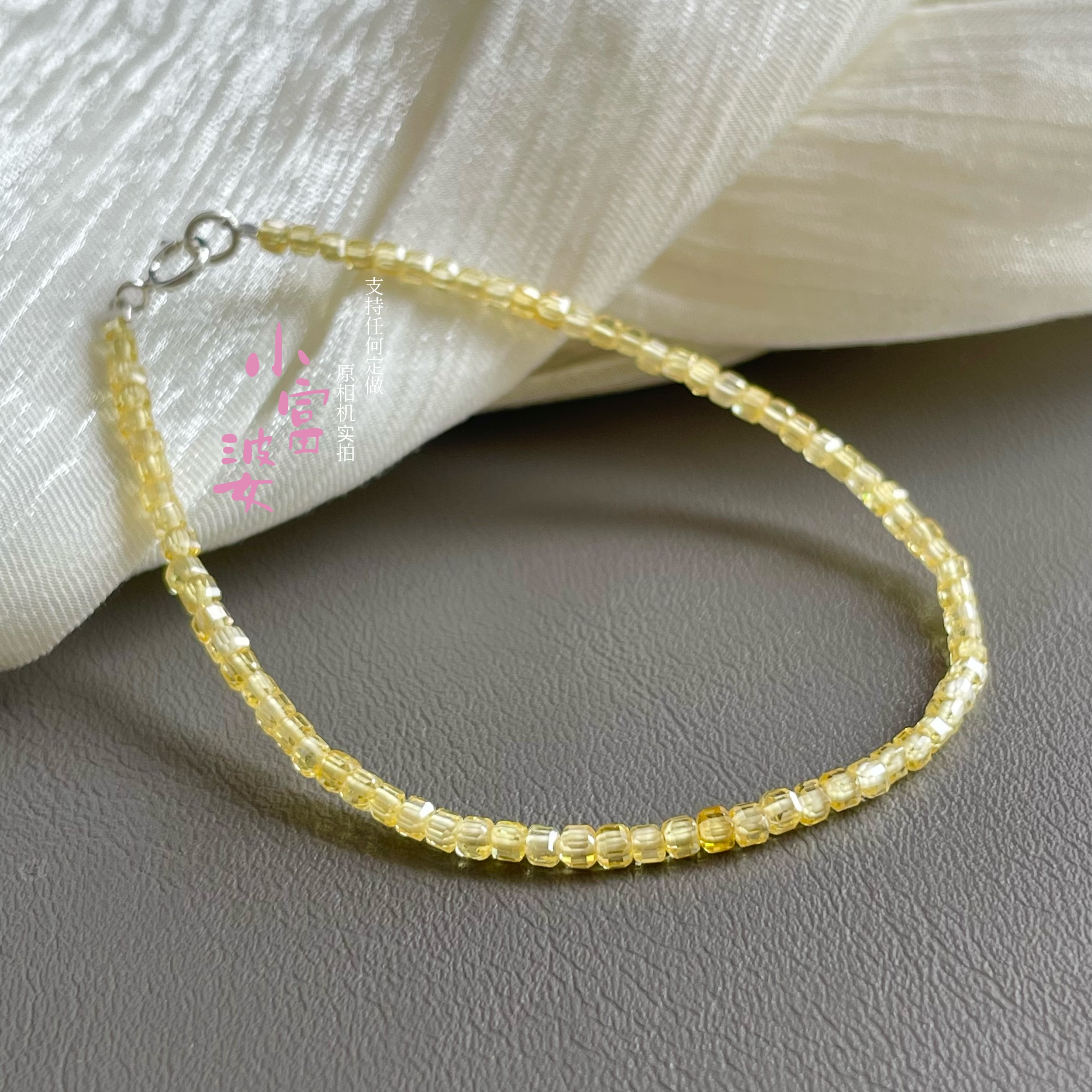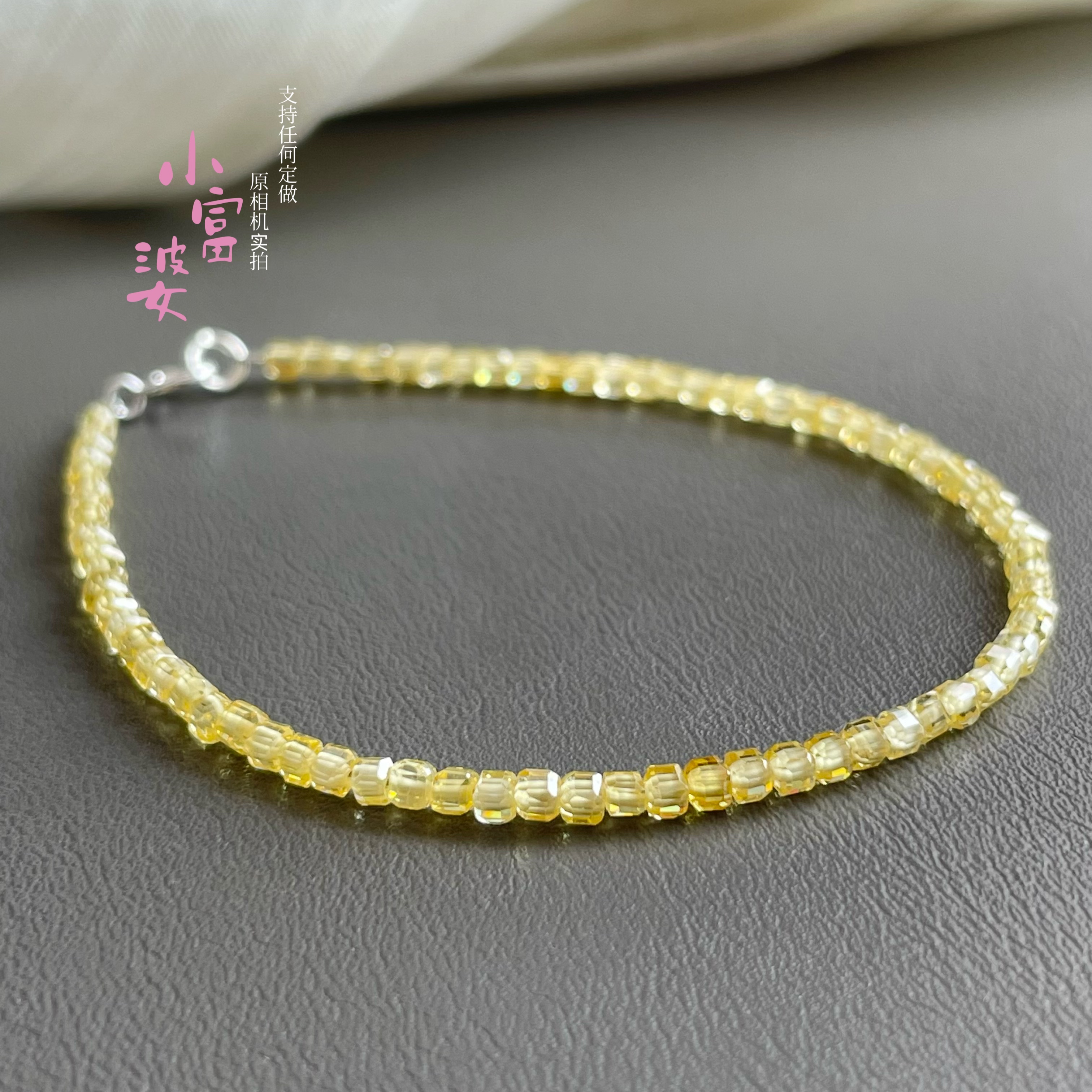 超闪金黄色手链小方块女款手链极细显白手串高级感简约百搭串珠