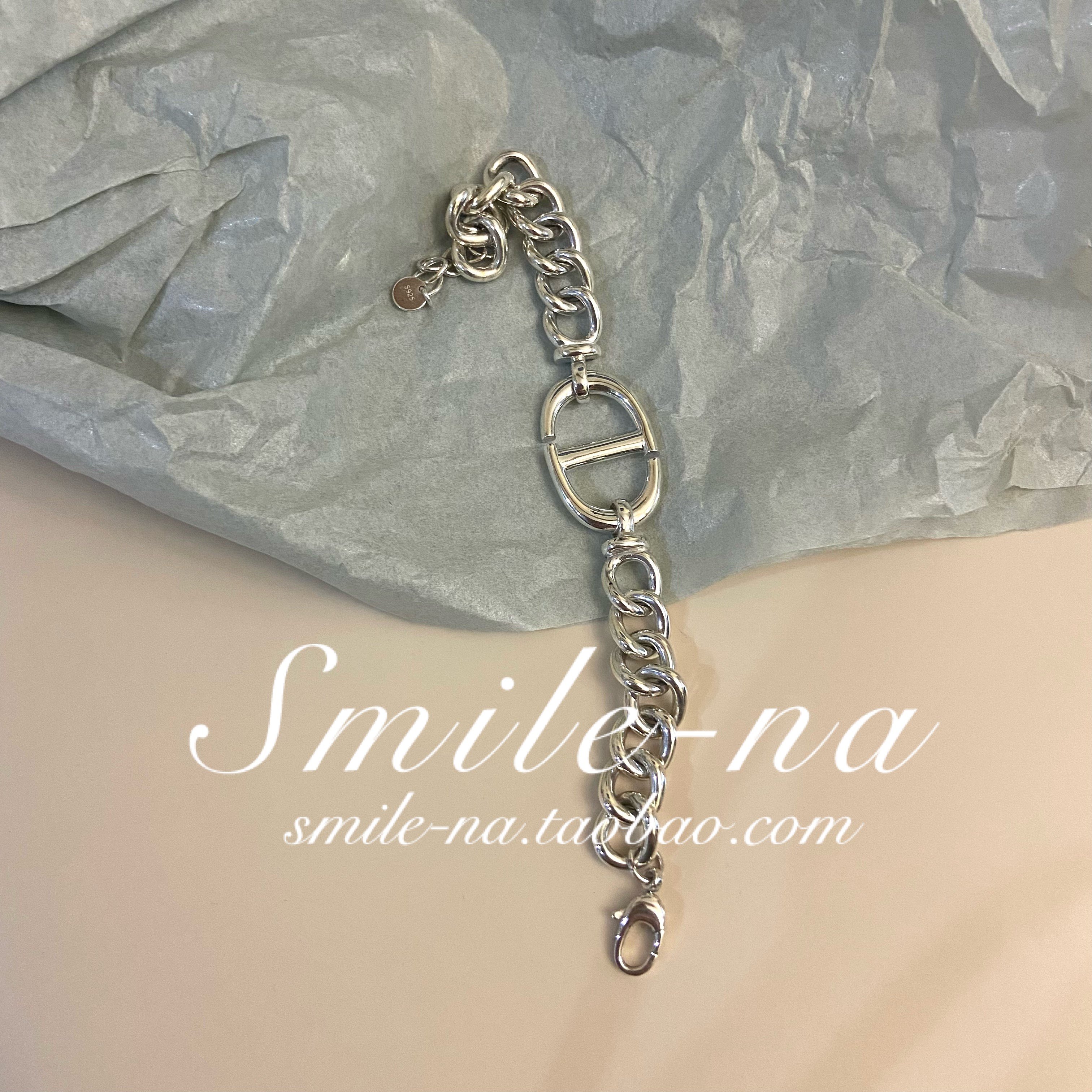 韩国进口925纯银小众设计师款猪鼻子字母镂空吊坠重工手链手环