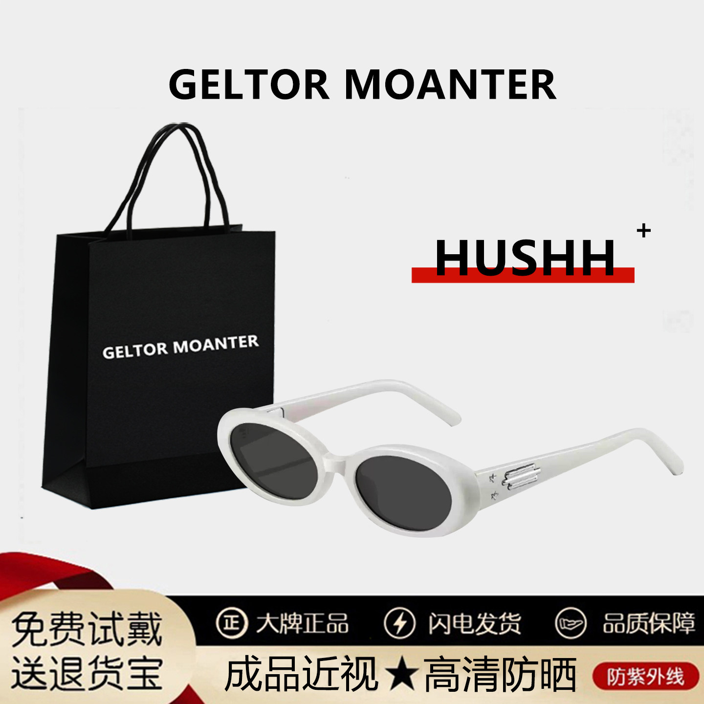 白色墨镜女款高级感椭圆框太阳眼镜适合方圆脸防紫外线近视带度数