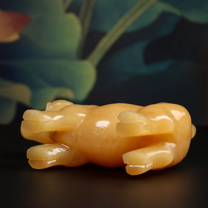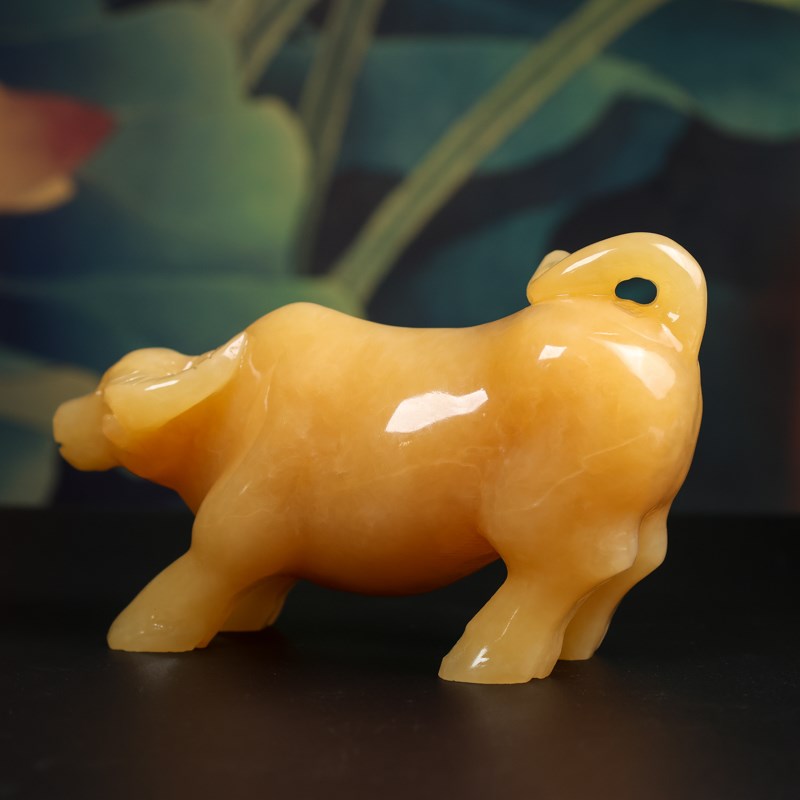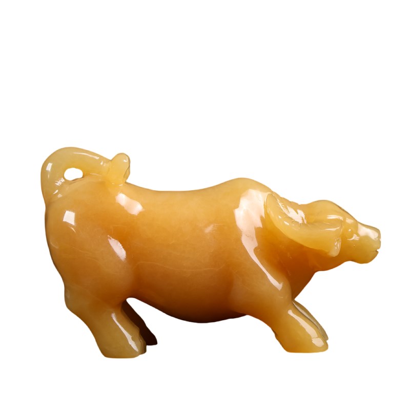 天然米黄玉石十二生肖牛摆件工艺品家居客厅玄关办公室桌面装饰品