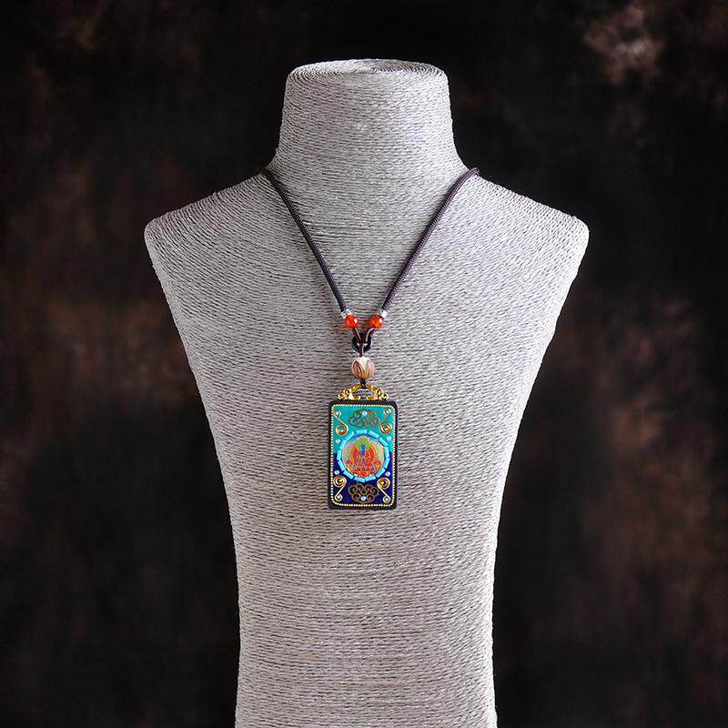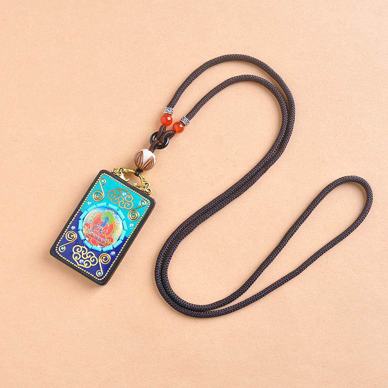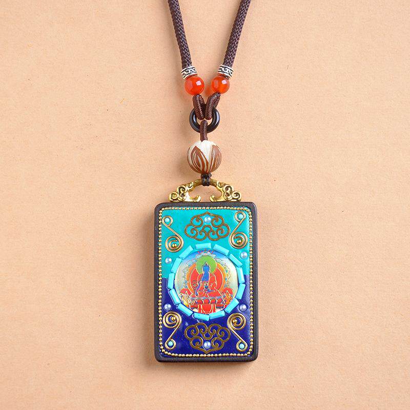 药师佛檀木唐卡胸牌吊坠男女项链护身符平安佛求健康佛牌镶嵌挂件