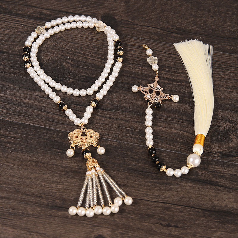 复古长璎珞简约时尚裙汉服璎珞长款明制流苏压襟旗袍国风平安锁