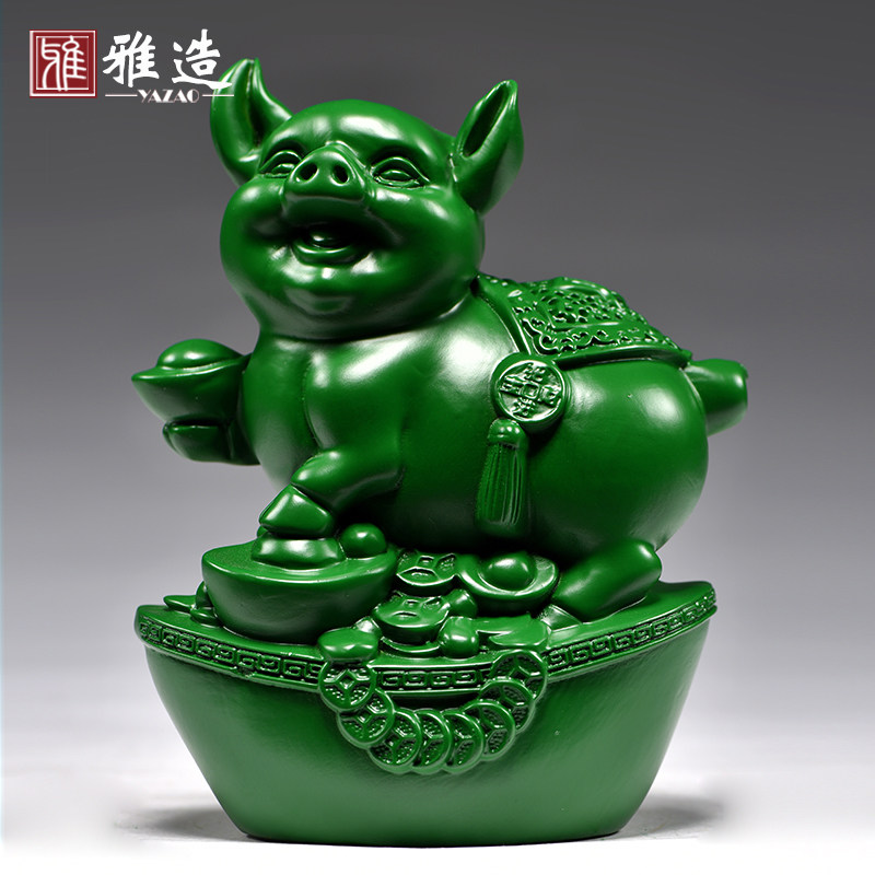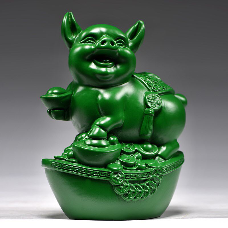 绿色木雕猪摆件实木雕p刻十二生肖工艺品家居客厅电视柜办公室装