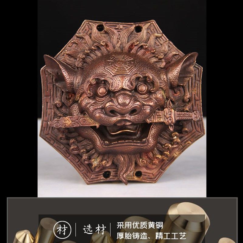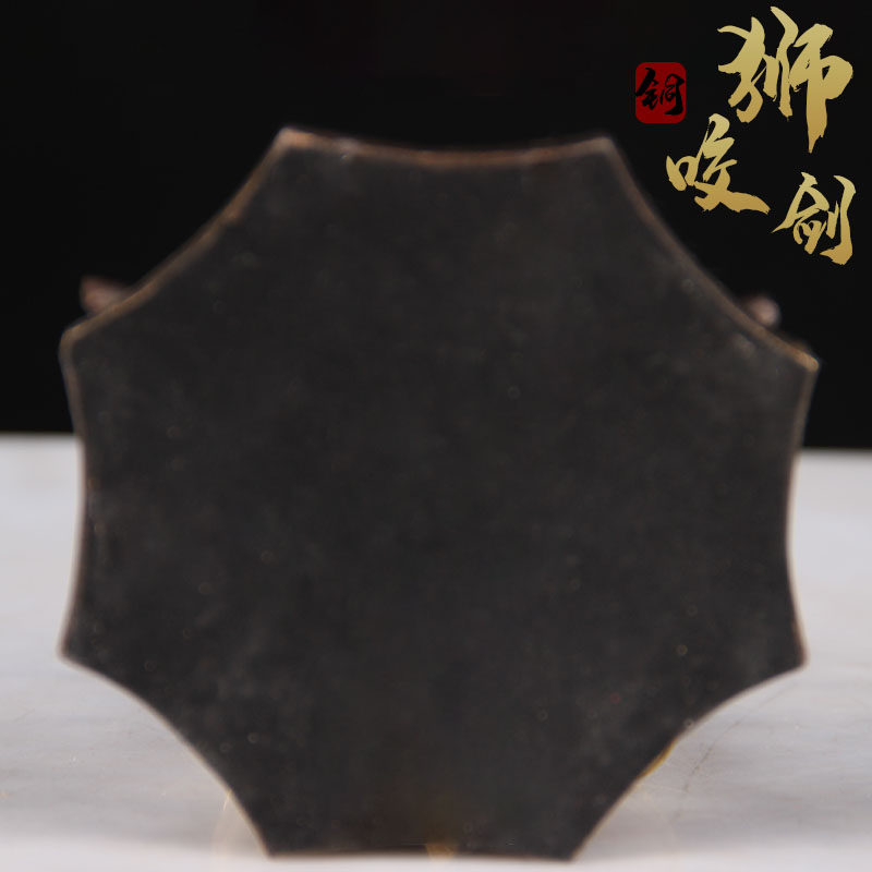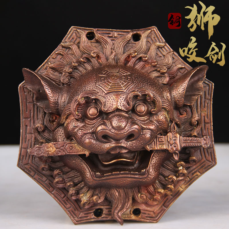紫色铜挂咬剑狮件 挂八角狮头挂件 铜铜件