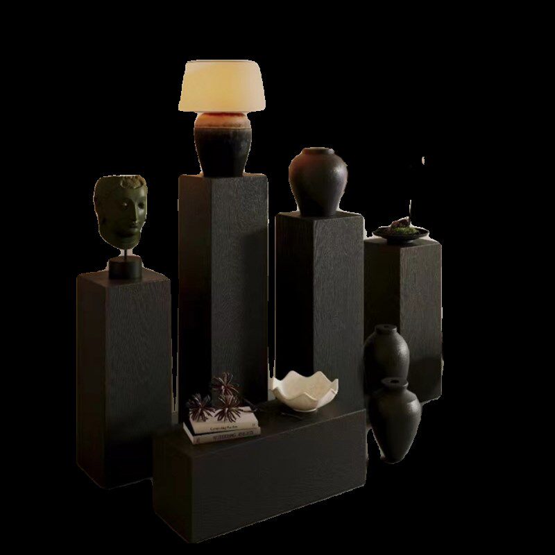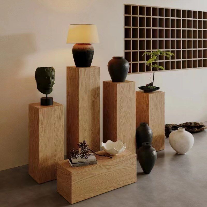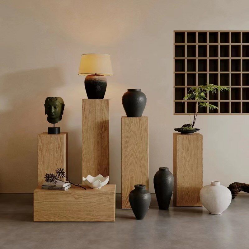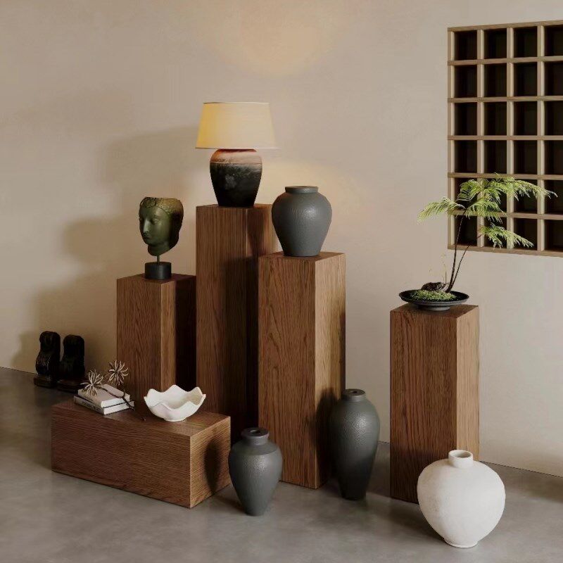 侘寂风实木墩子摆件原木墩花架民宿酒店边角几矮凳方形木桩展示台