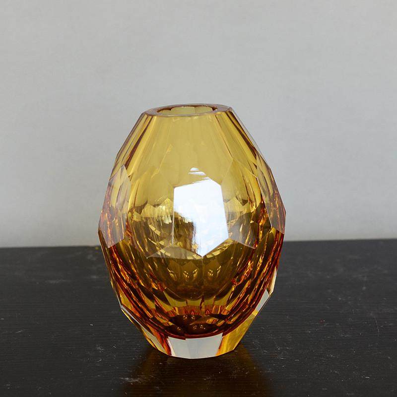 蓝色绿色琥珀色彩色玻璃花瓶美式乡村几何形摆件创意玻璃花瓶