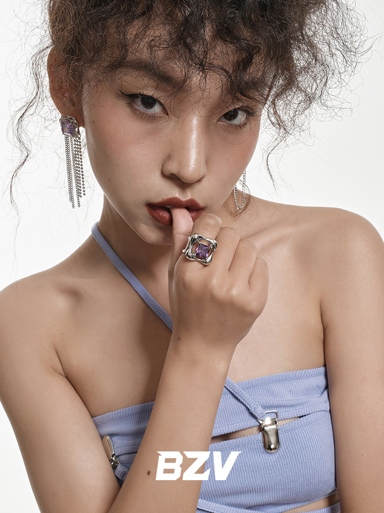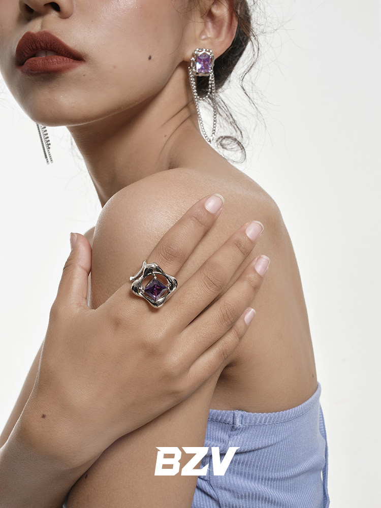 BZV 未来紫 科技感云朵镂空小众紫色锆石个性夸张设计开口戒指