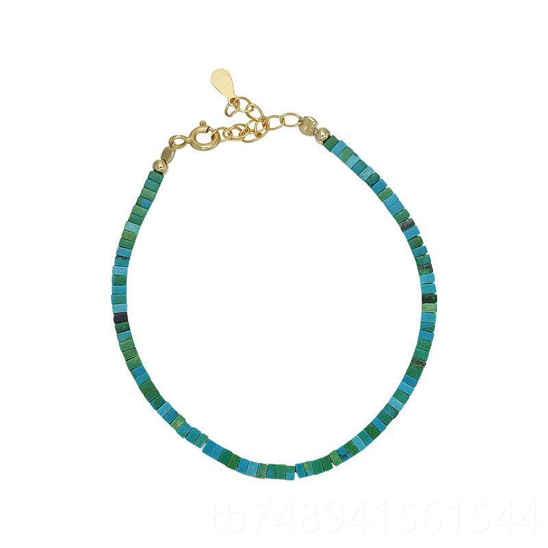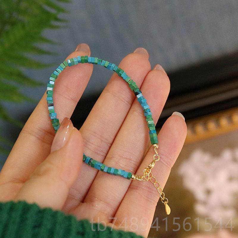 正品95纯银极细绿首松石手链古风2饰复古镀14k金清镯新绿色女小众