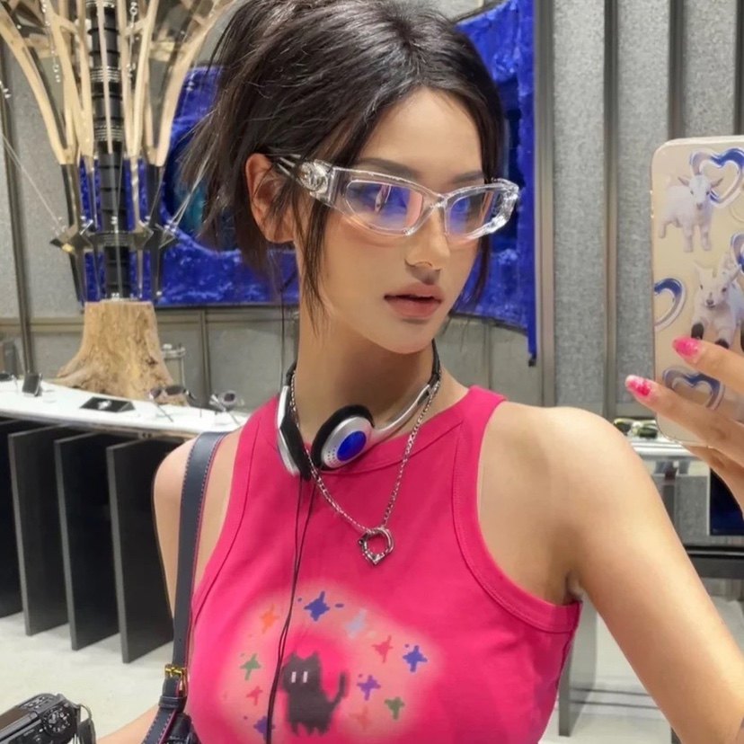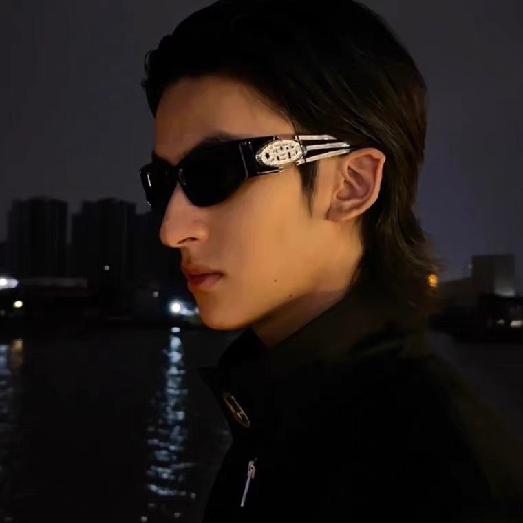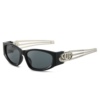 全员特务科技感男士窄脸金属时尚黑色墨镜字母猫眼太阳镜防紫外线