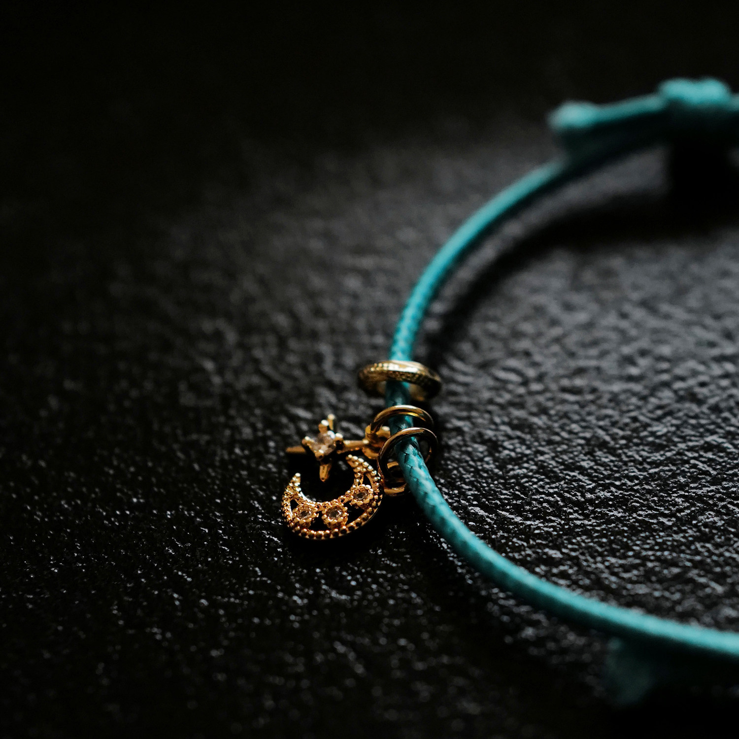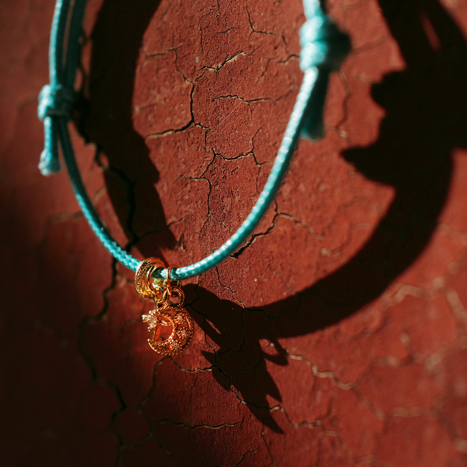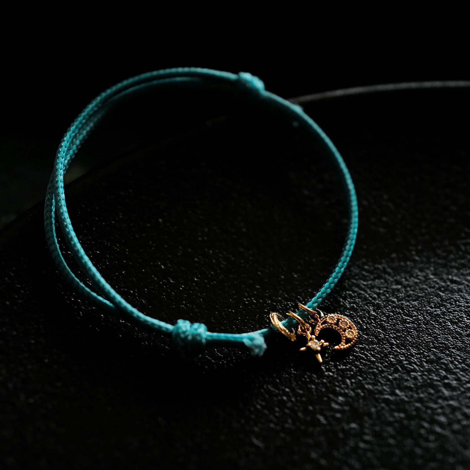 一小片夜 锆石镀金星星月亮湖蓝色手绳手链原创小众设计情侣礼物