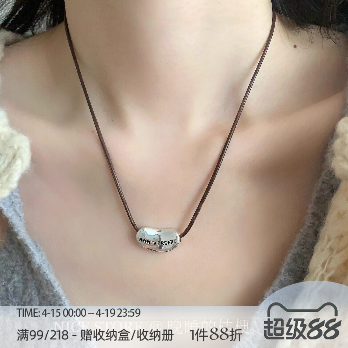 晚睡的桔梗「纪念日」百搭字母豆豆项链黑色皮绳简约ins锁骨链