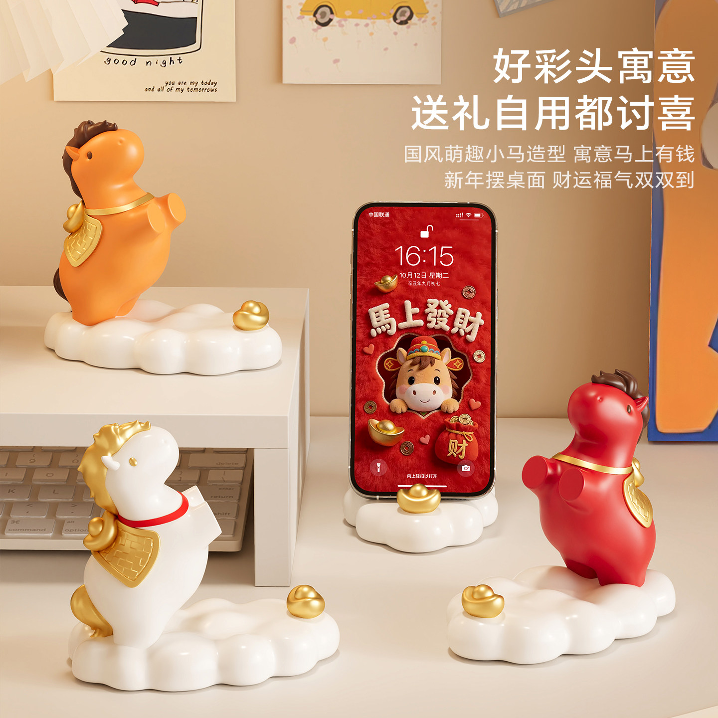 小马手机支架桌面情绪稳定器马上有钱摆件马年吉祥物本命年礼物