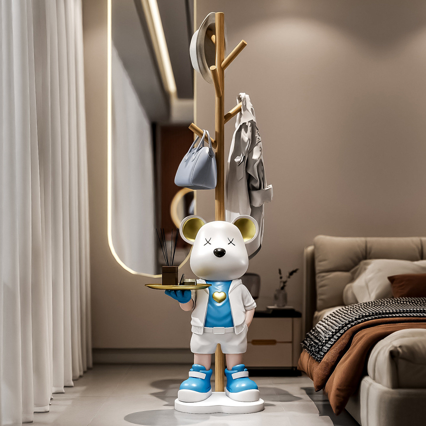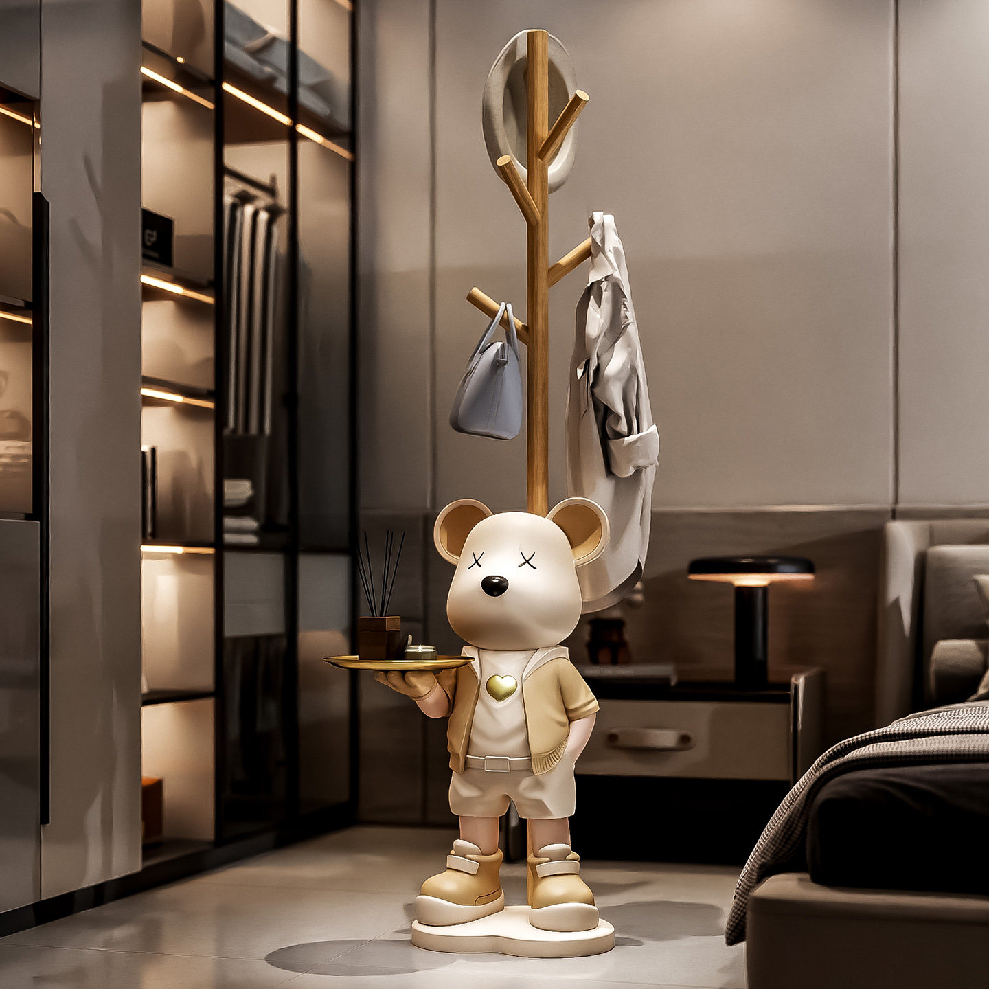 暴力熊衣帽架衣服实木落地挂衣架客厅大型摆件卧室床头房间装饰品