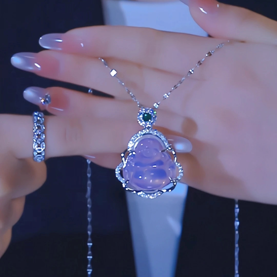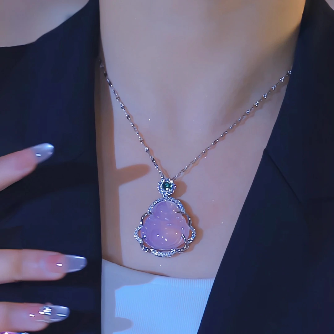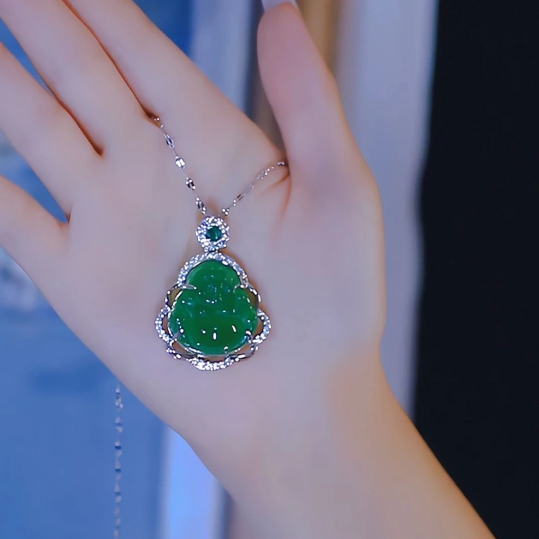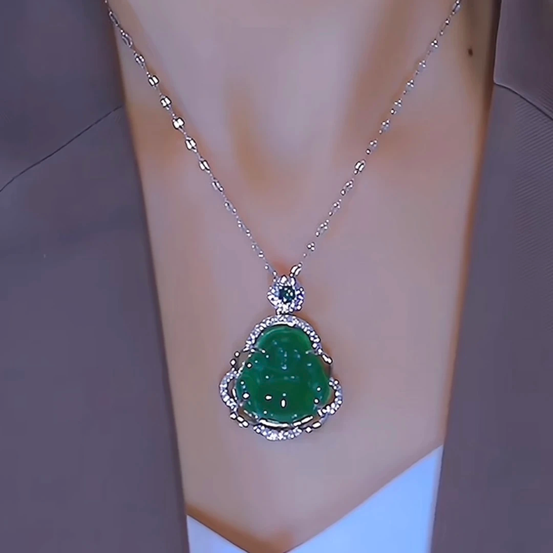 新中式满锆绿色招财大肚佛公吊坠项链女新款小众轻奢不掉色锁骨链