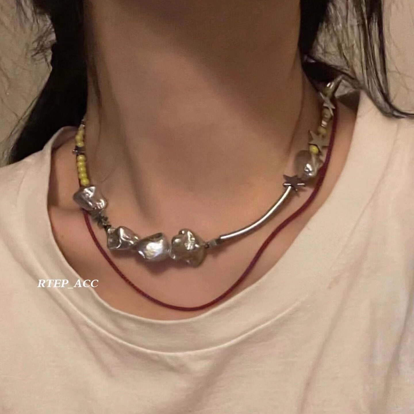 RTEP 小众y2k星星sagegasage巴洛克珍珠弯管辣妹彩色五角星项链