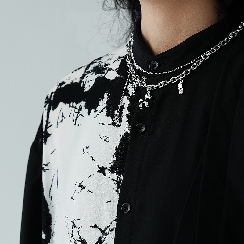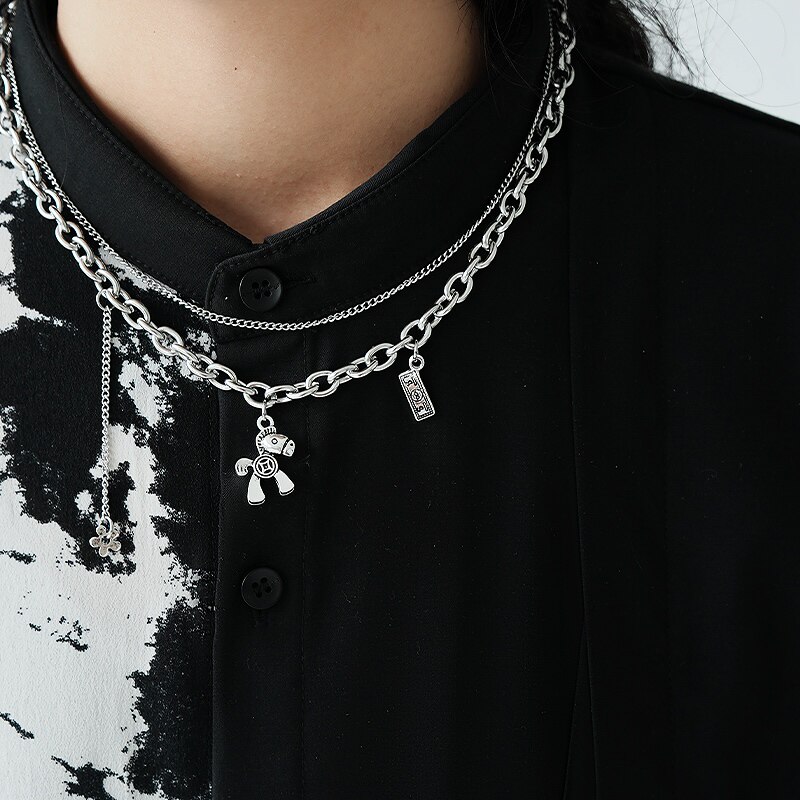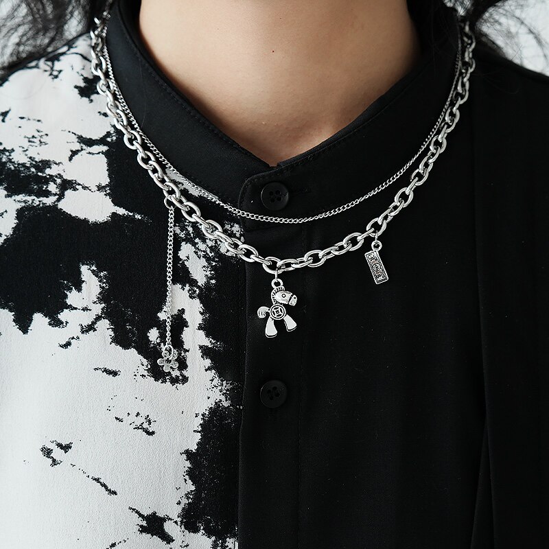 贰狸手作「马上有钱」原创复古钛钢拼接项链锁骨链ins长款毛衣链