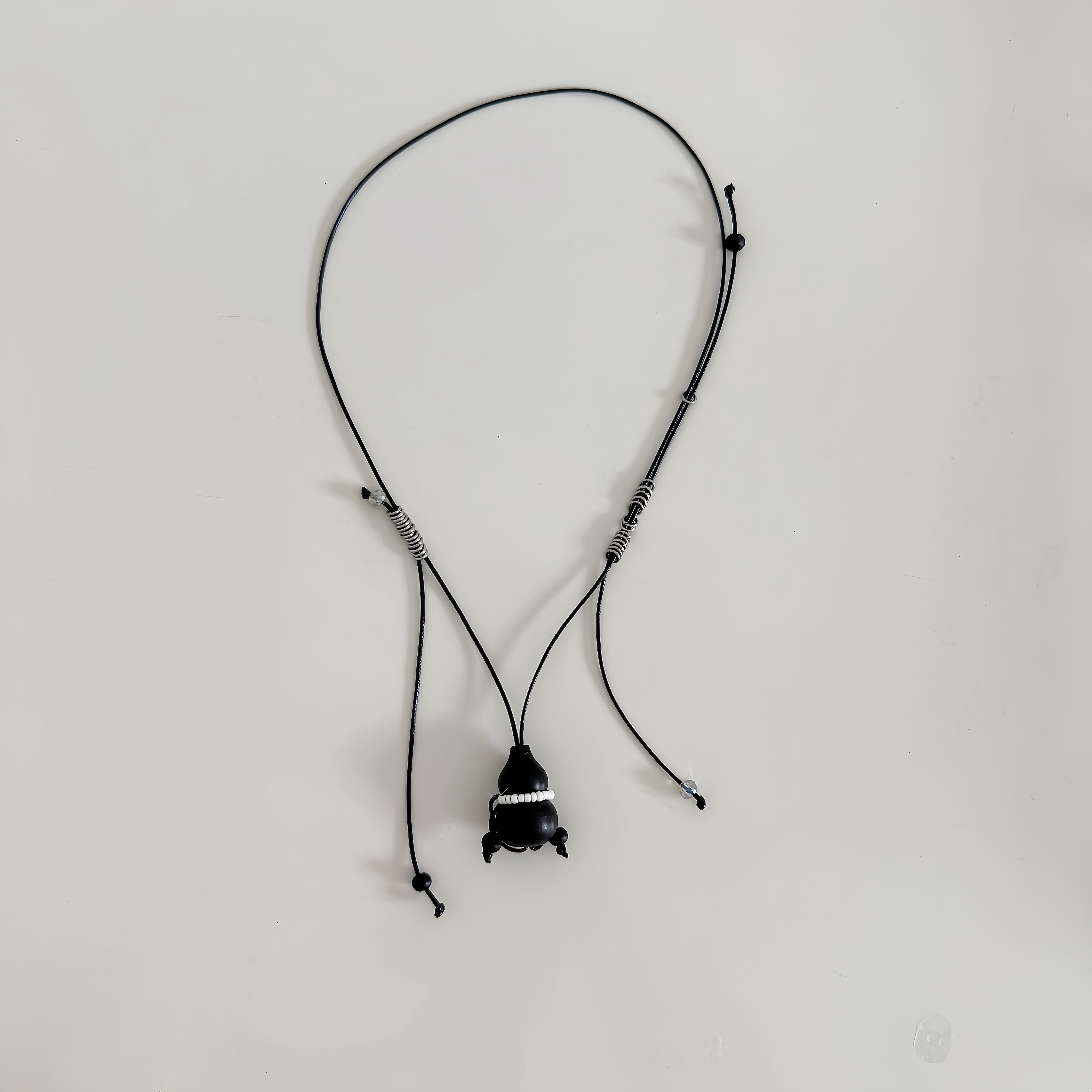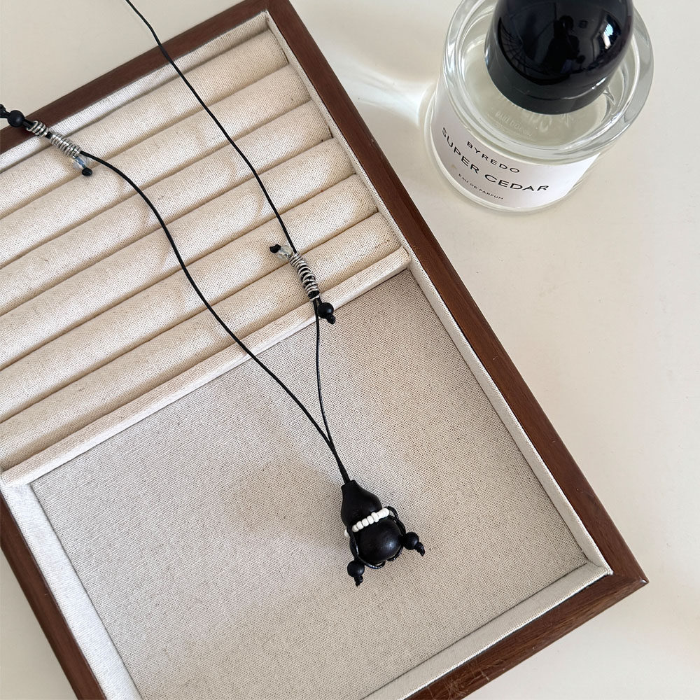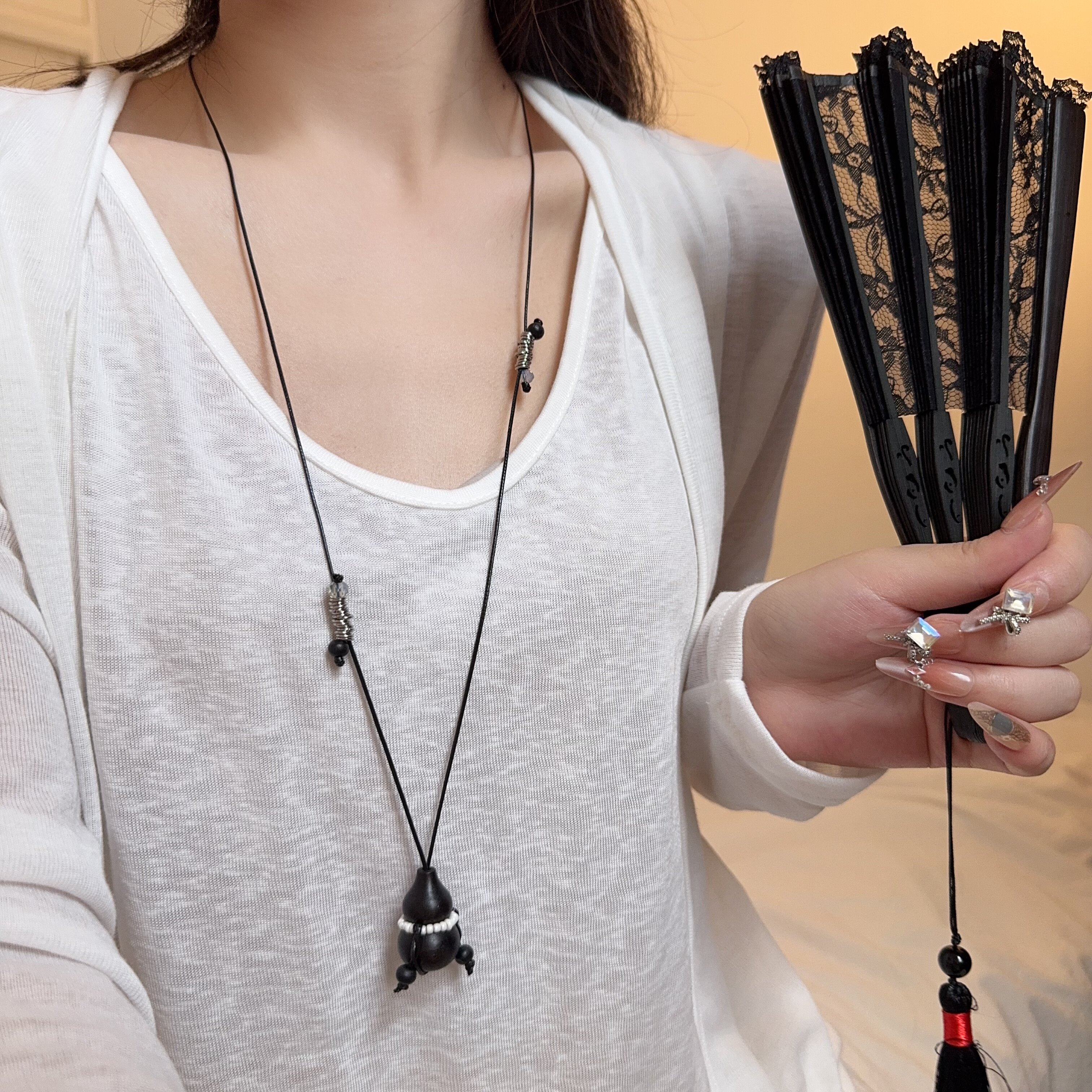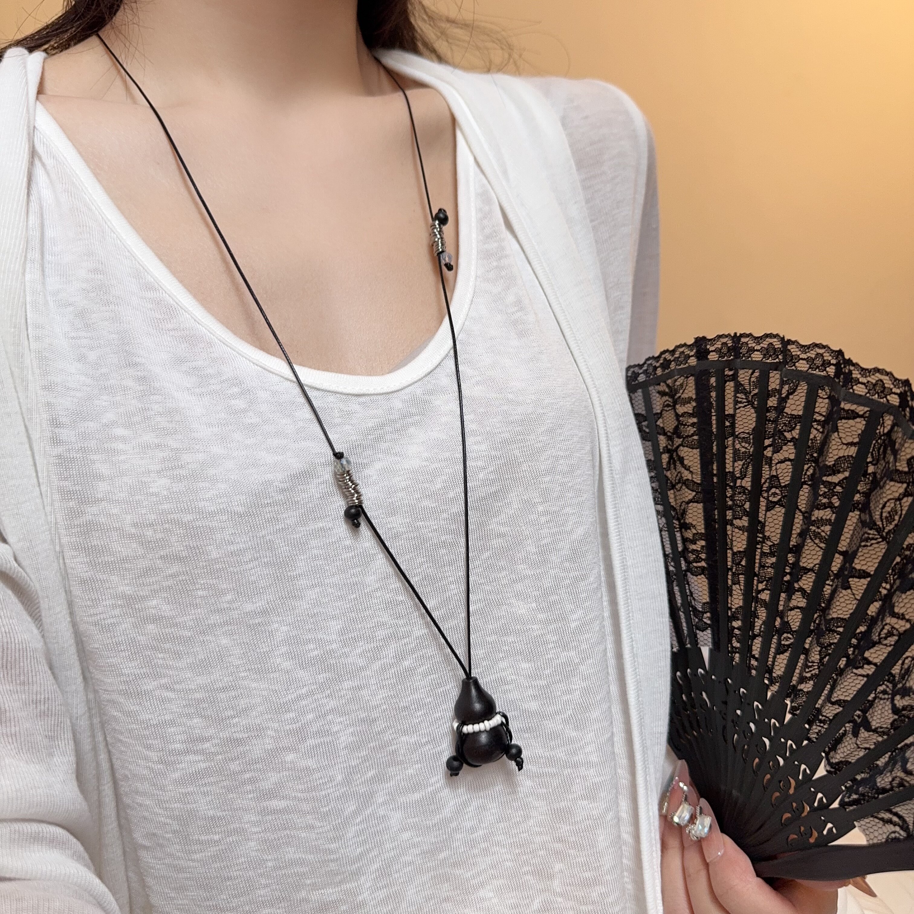 中式复古木质葫芦吊坠黑色编绳项链女简约民族风设计感长款毛衣链