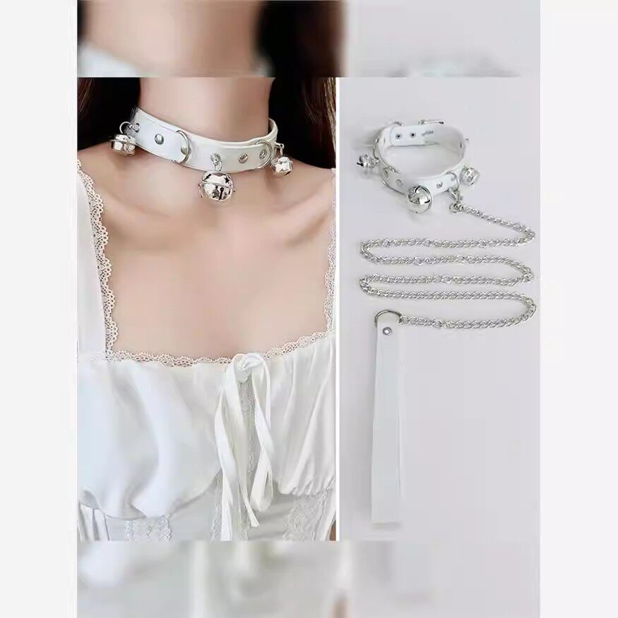 铃铛项圈女牵引绳颈带链子性感颈环s颈圈m颈链黑色脖圈x恶意颈链
