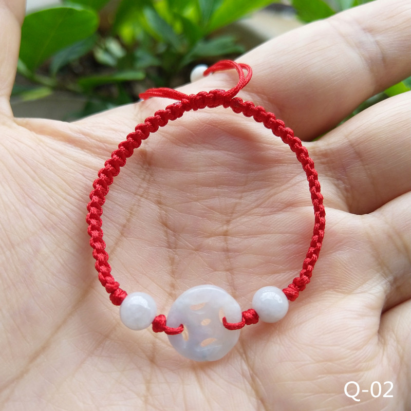 送宝宝手工编平安结手绳天然玉石转运珠红绳防四眼金钱扣一物一图