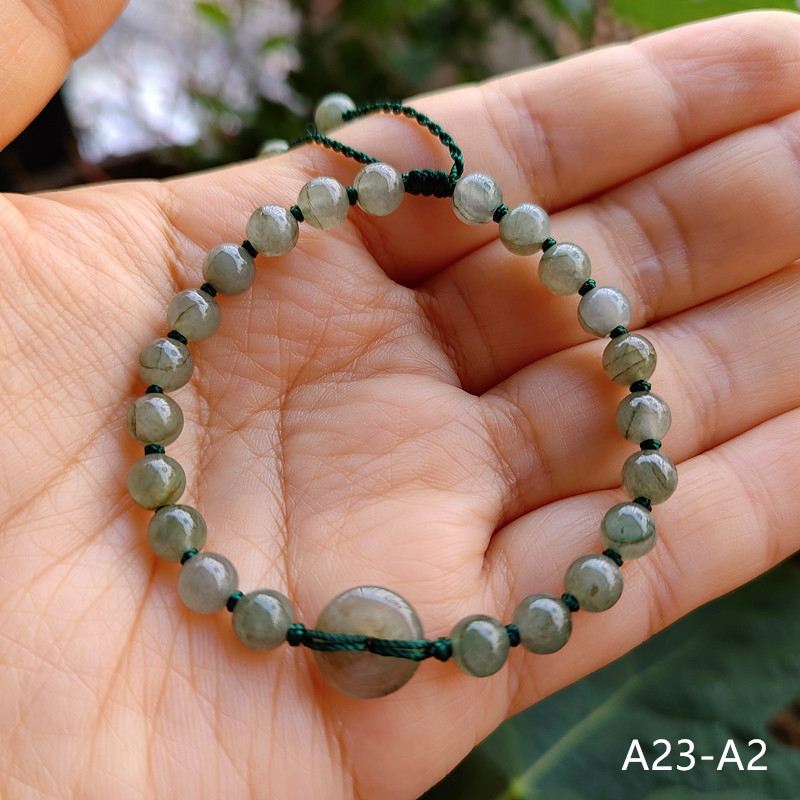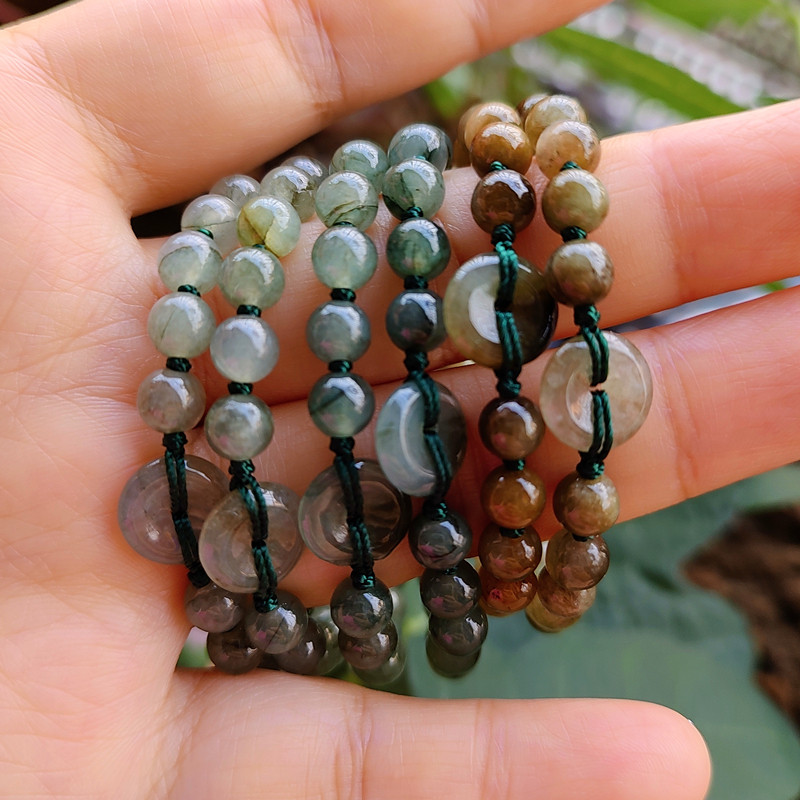细款精挑翡翠平安扣手链小玉珠手串女天然玉石绳编送情侣闺蜜儿童