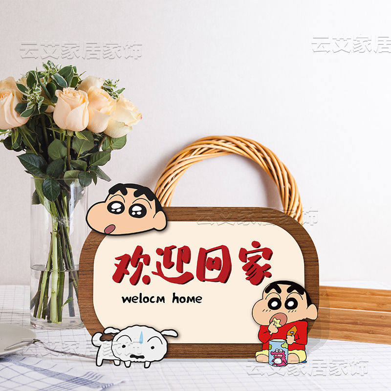 蜡笔小新欢迎回家卡通入户门口玄关小摆件进门客厅仪式布置装饰品