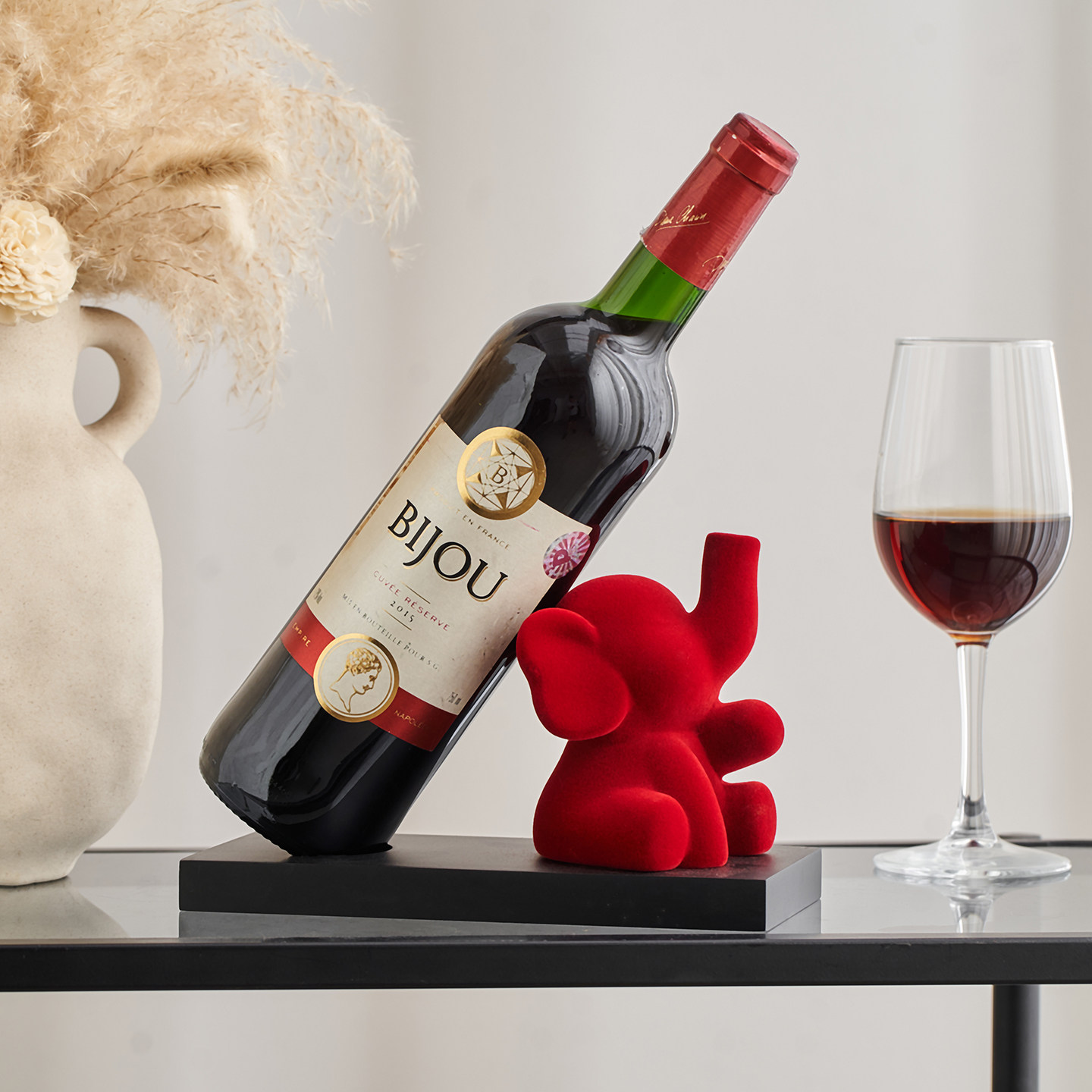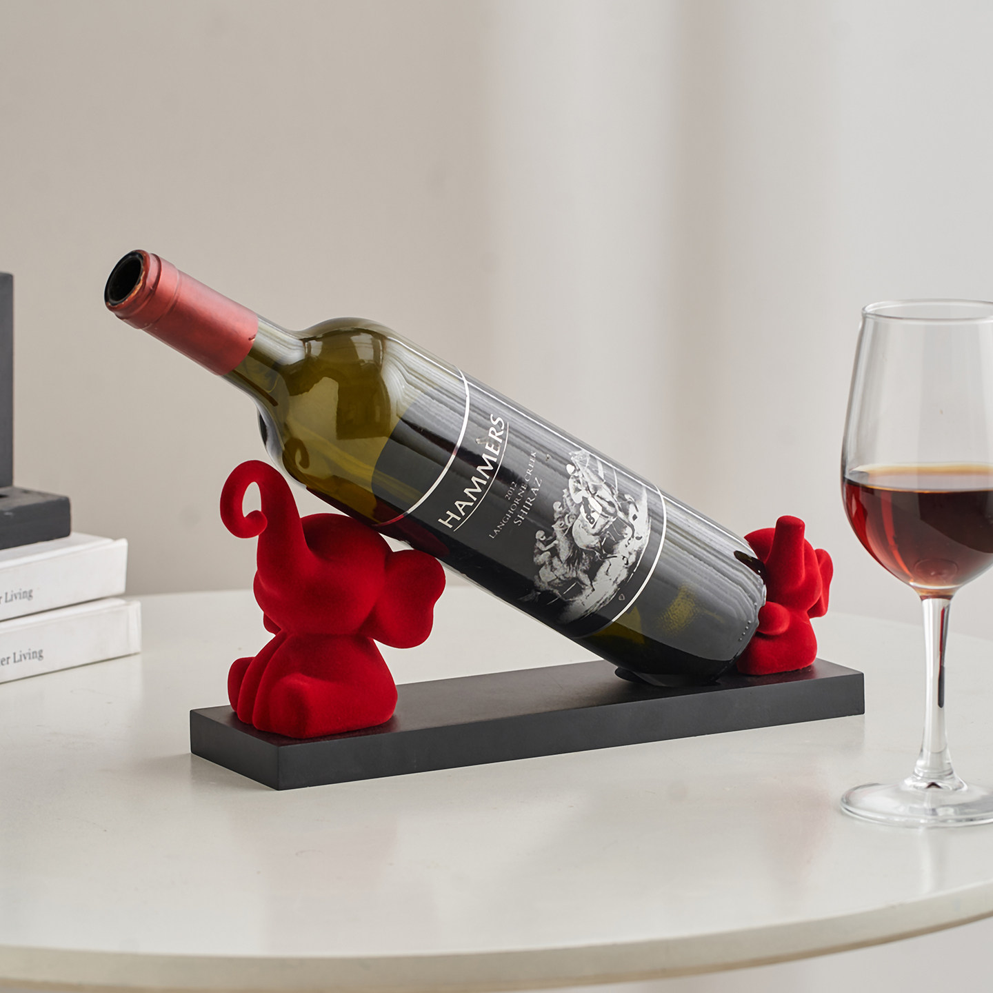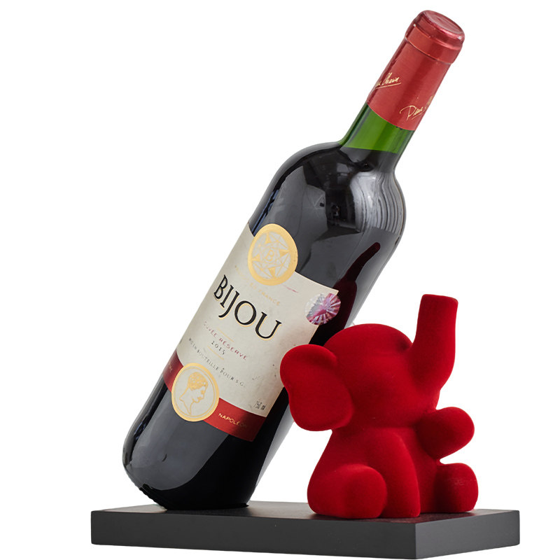 2025新款红色植绒创意可爱大象红酒架 客厅酒柜轻奢装饰摆件
