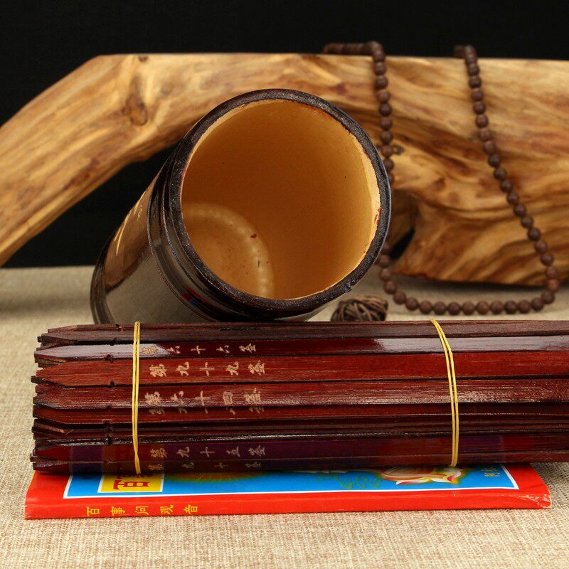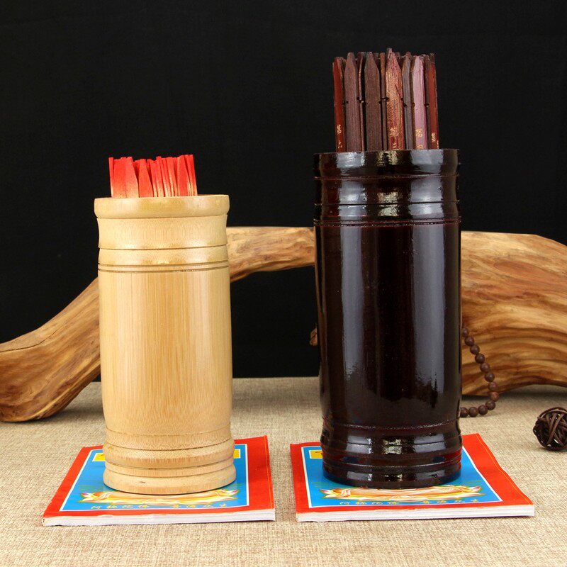 天然竹签桶手工摇签筒100签观音签抽签筒红色白色竹桶求签桶道具