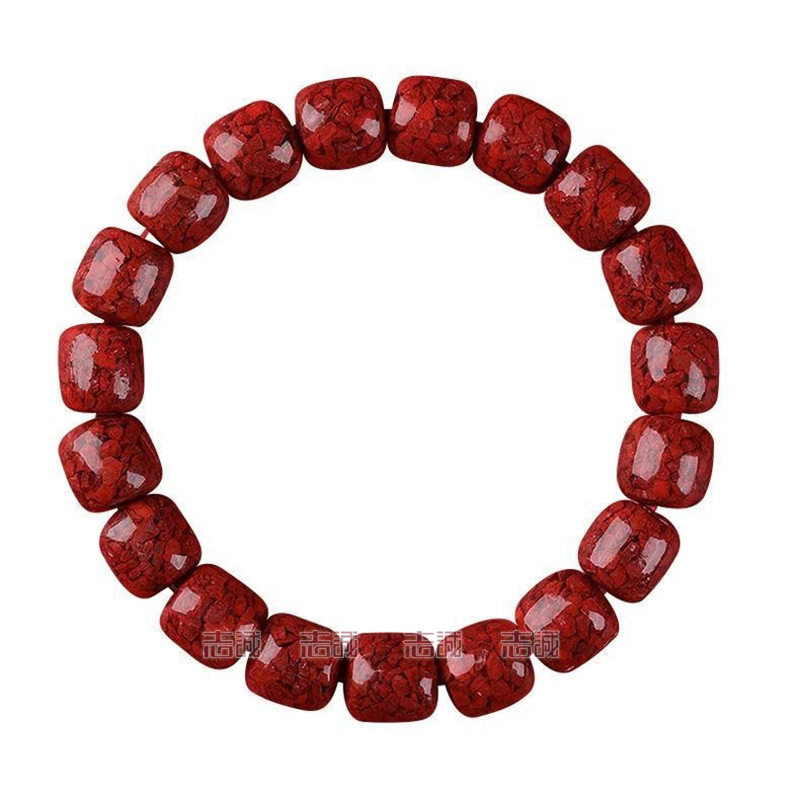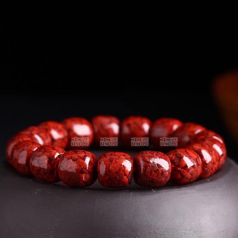 天然晶体砂桶珠单圈手链男女士款红色朱砂老型珠手串辰砂10-12mm
