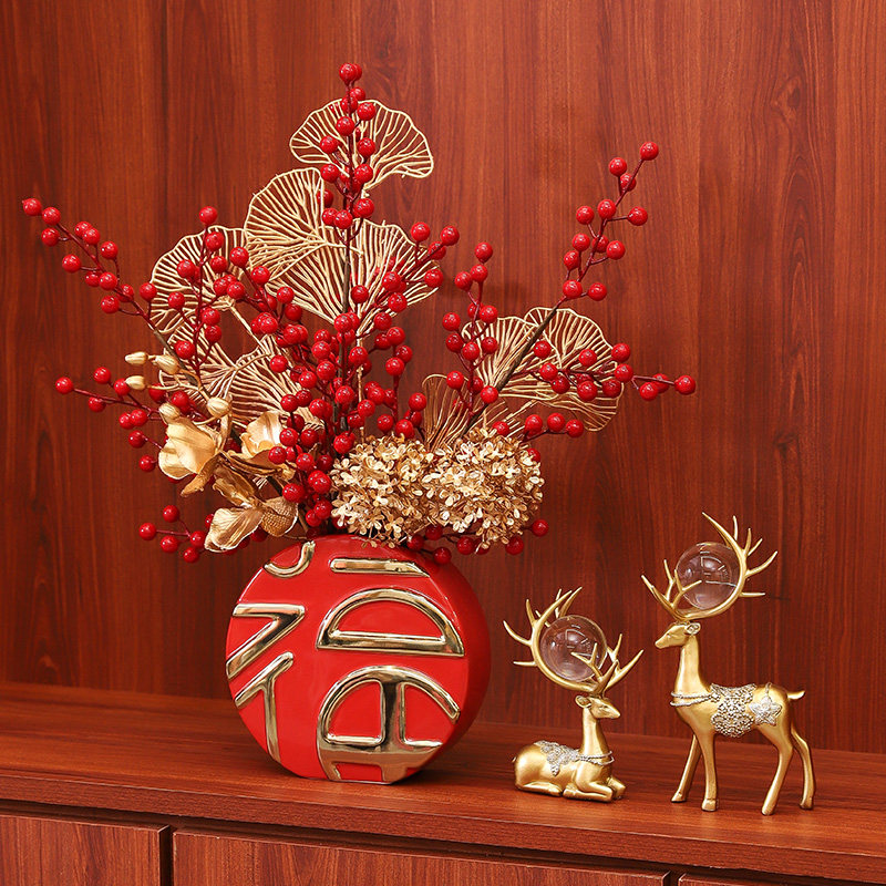 乔迁新居红色喜庆礼品客厅电视柜玄关新年装饰中式福气发财果摆件