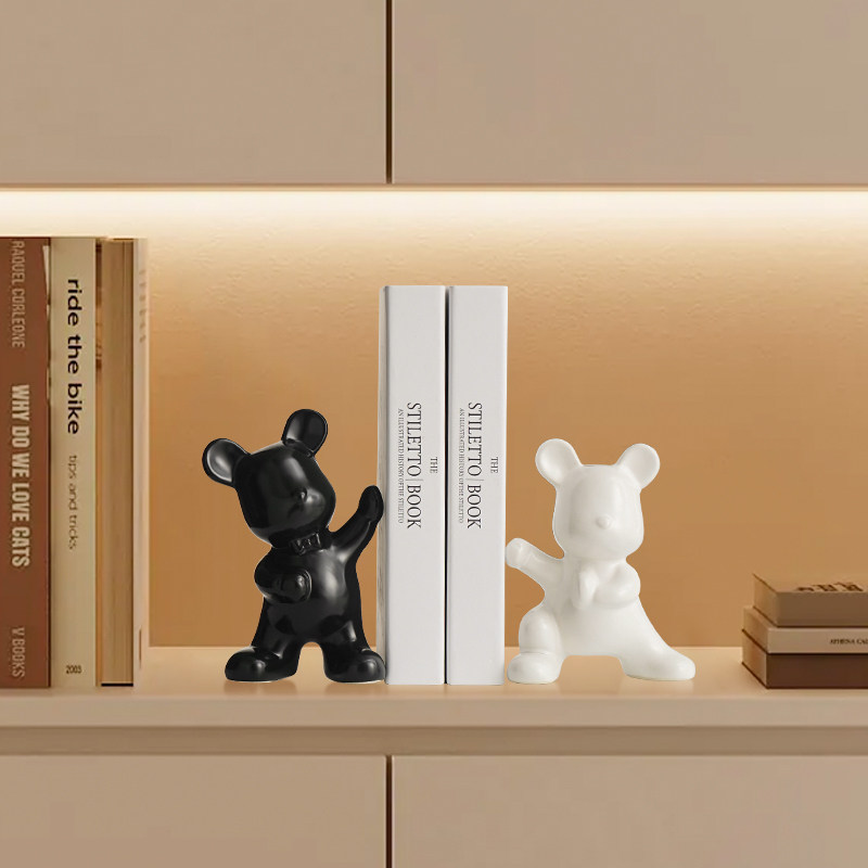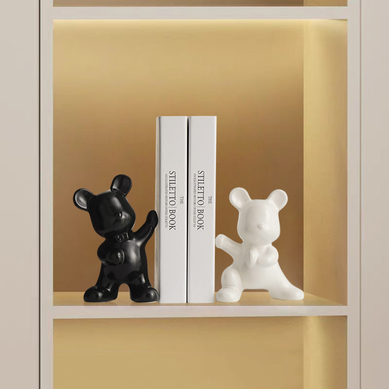 简约轻奢暴力熊创意书档摆件客厅酒柜玄关书柜陶瓷桌面立体装饰品