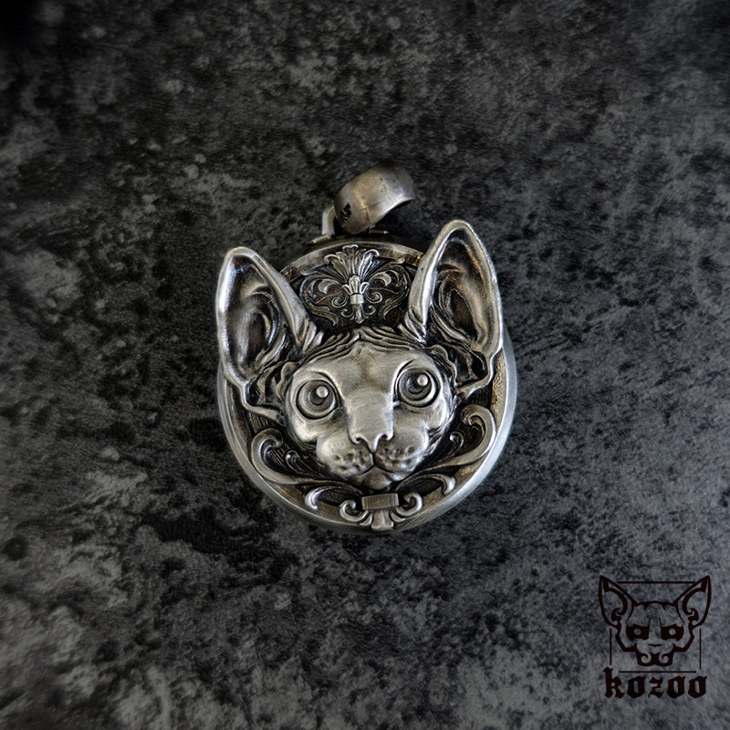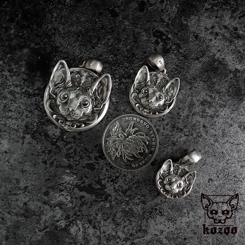 kozoo原创设计斯芬克斯挂坠新款项链无毛猫饰品925纯银币浮雕镶嵌