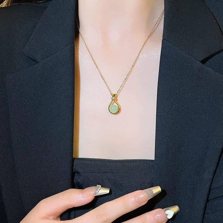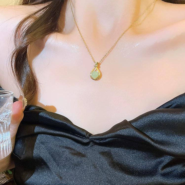 新款国风潮轻奢设计感气质百搭绿色仿古玉项链福袋锁骨链女款饰品