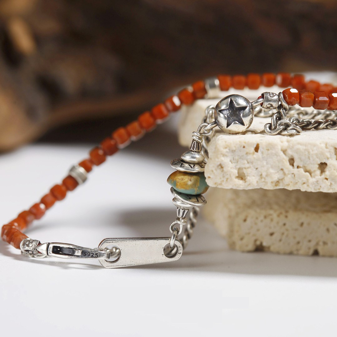杭潮创小众设计[石榴]原手作红色双层s925纯银手链轻奢小众配饰