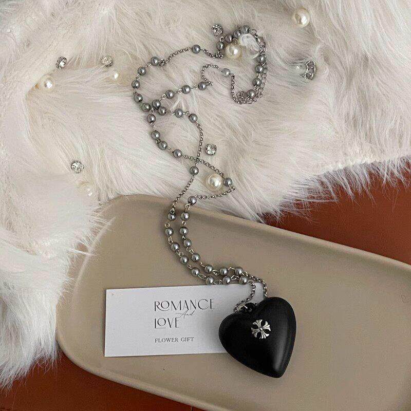 韩国网红博主同款黑色爱心珍珠毛衣炼高级感秋冬百搭长版项炼配饰