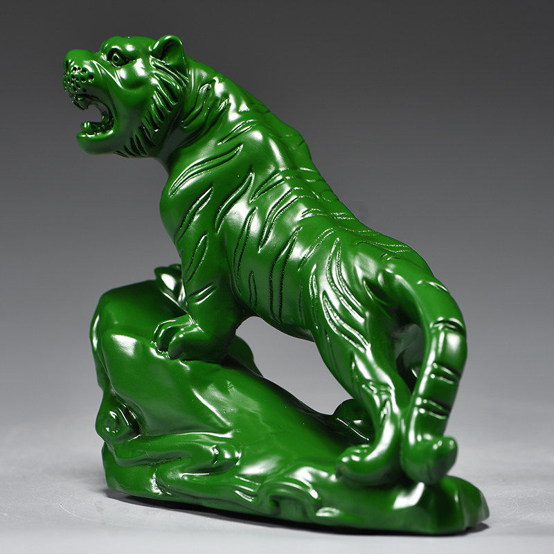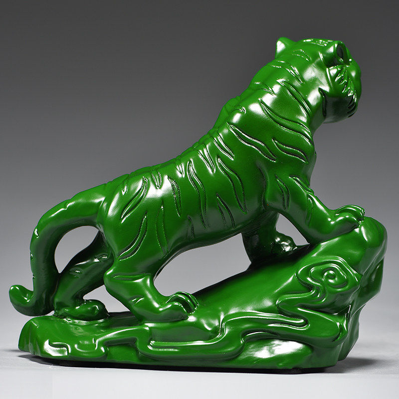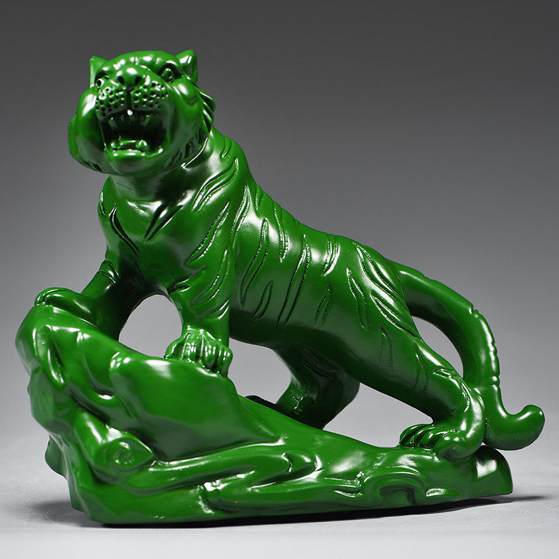 绿色木雕老虎摆件实木质上山虎十二生肖木制吉祥物木头装饰工艺品