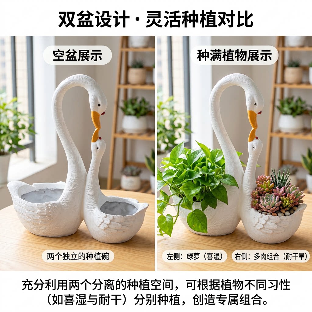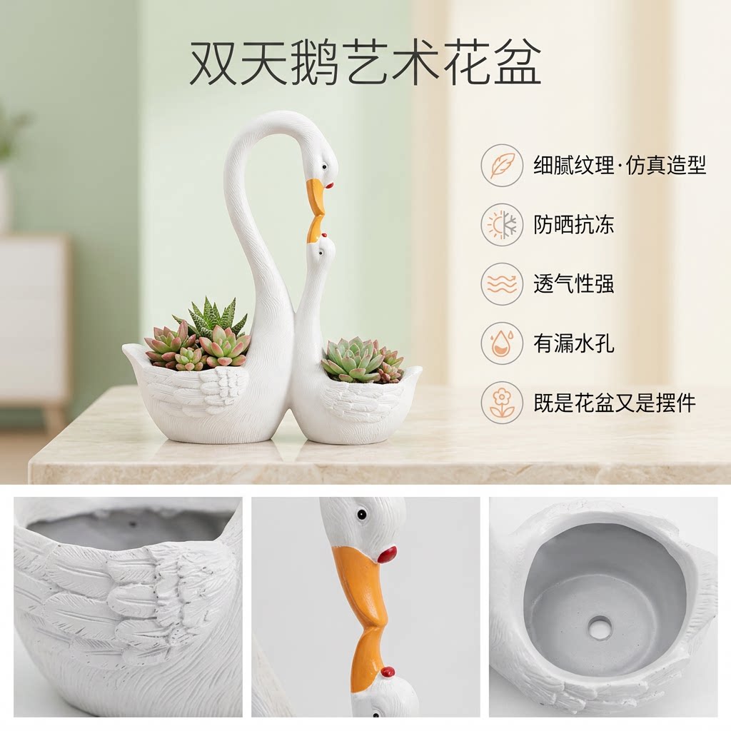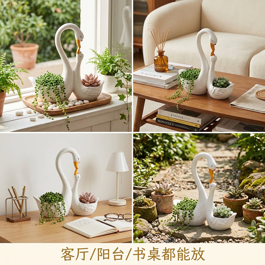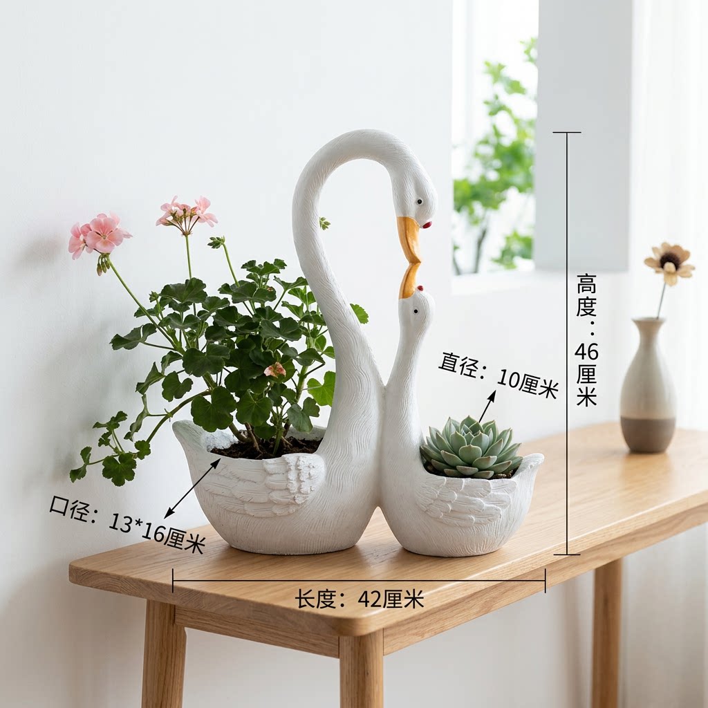 天鹅摆件一对高级感客厅装饰家居创意树脂插花桌面玄关酒柜工艺品