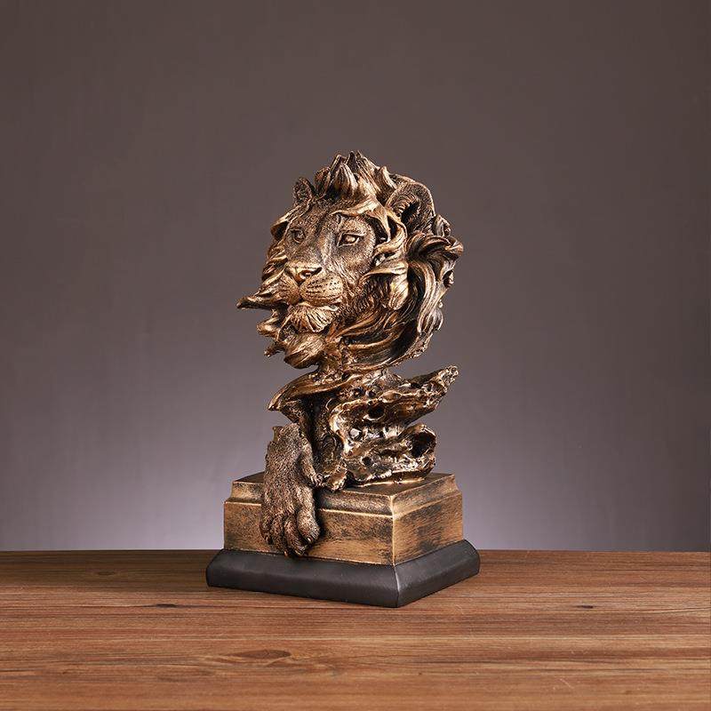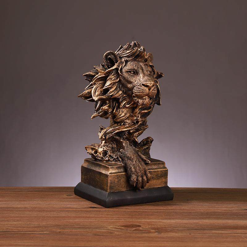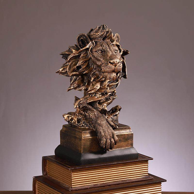 复古狮子树脂摆件客厅书房办公室桌面装饰品乔迁礼品创意雄狮摆件