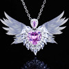 儿童爱心水晶项链天使之翼吊坠蓝色心形项坠时尚锁骨链学生日礼物