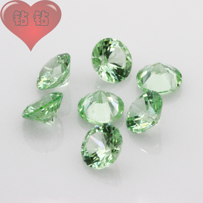 圆形绿刚玉裸石戒面 浅绿色人造宝石尖底DIY散珠镶嵌73#
